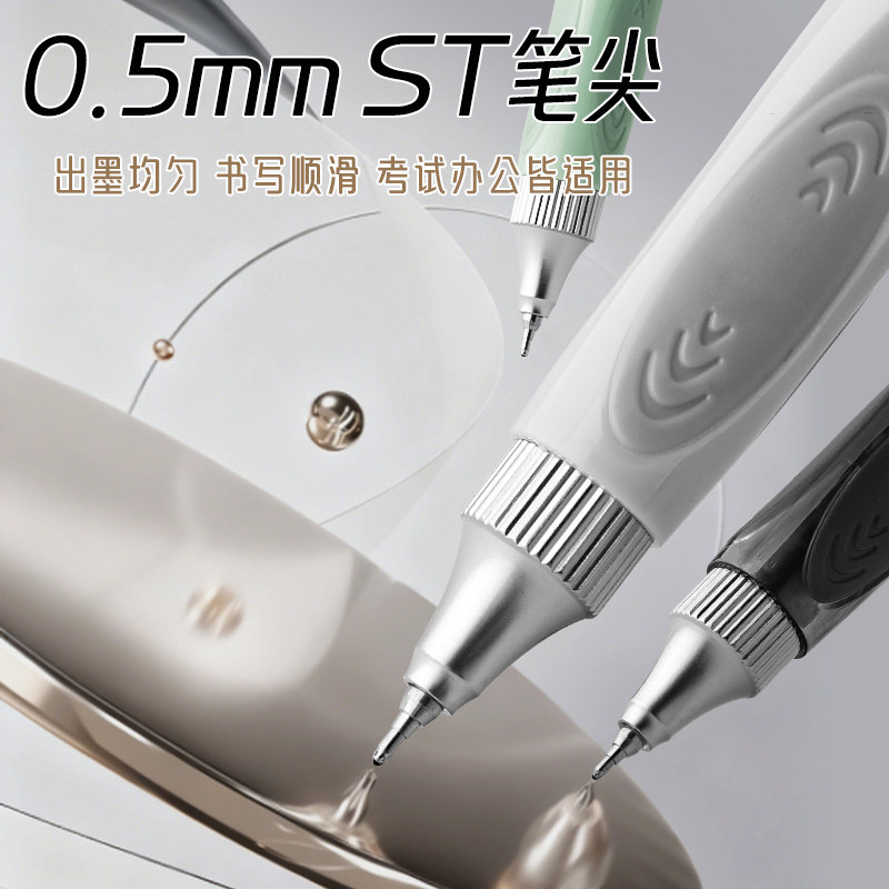 ST刷题笔高颜值按动中性笔圆珠笔黑色水笔小学生专用考试0.5速干碳素笔水性黑笔按压式做笔记签字笔非按斤卖