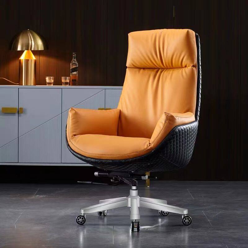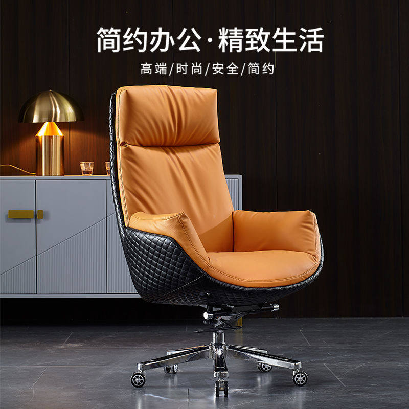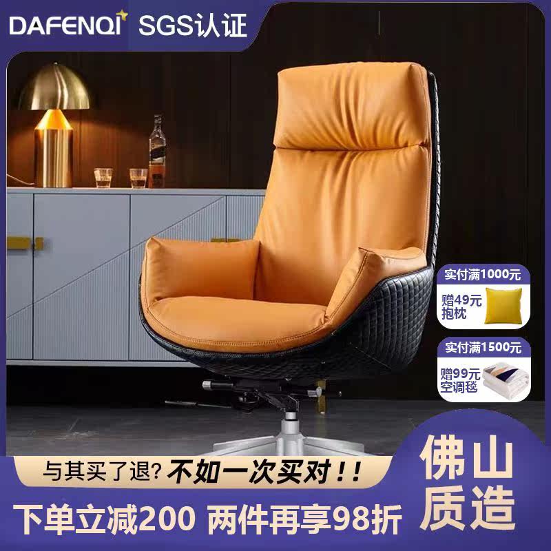 2025舒适牛皮电脑椅真皮老板椅家用客厅书房办公椅商务座椅透气皮椅子