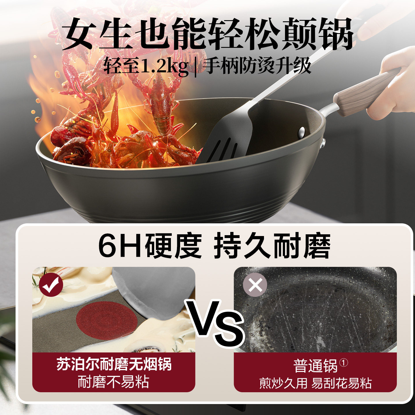 苏泊尔不粘锅家用炒锅无油烟平底锅炒菜锅平底锅电磁炉燃气灶适用