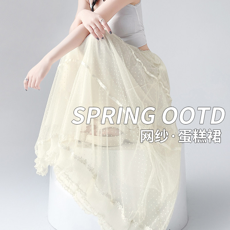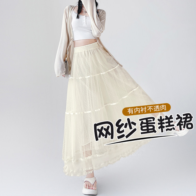 NOME(服饰)半身裙女2025春夏季新款超仙A字蓬蓬杏色蛋糕裙长裙