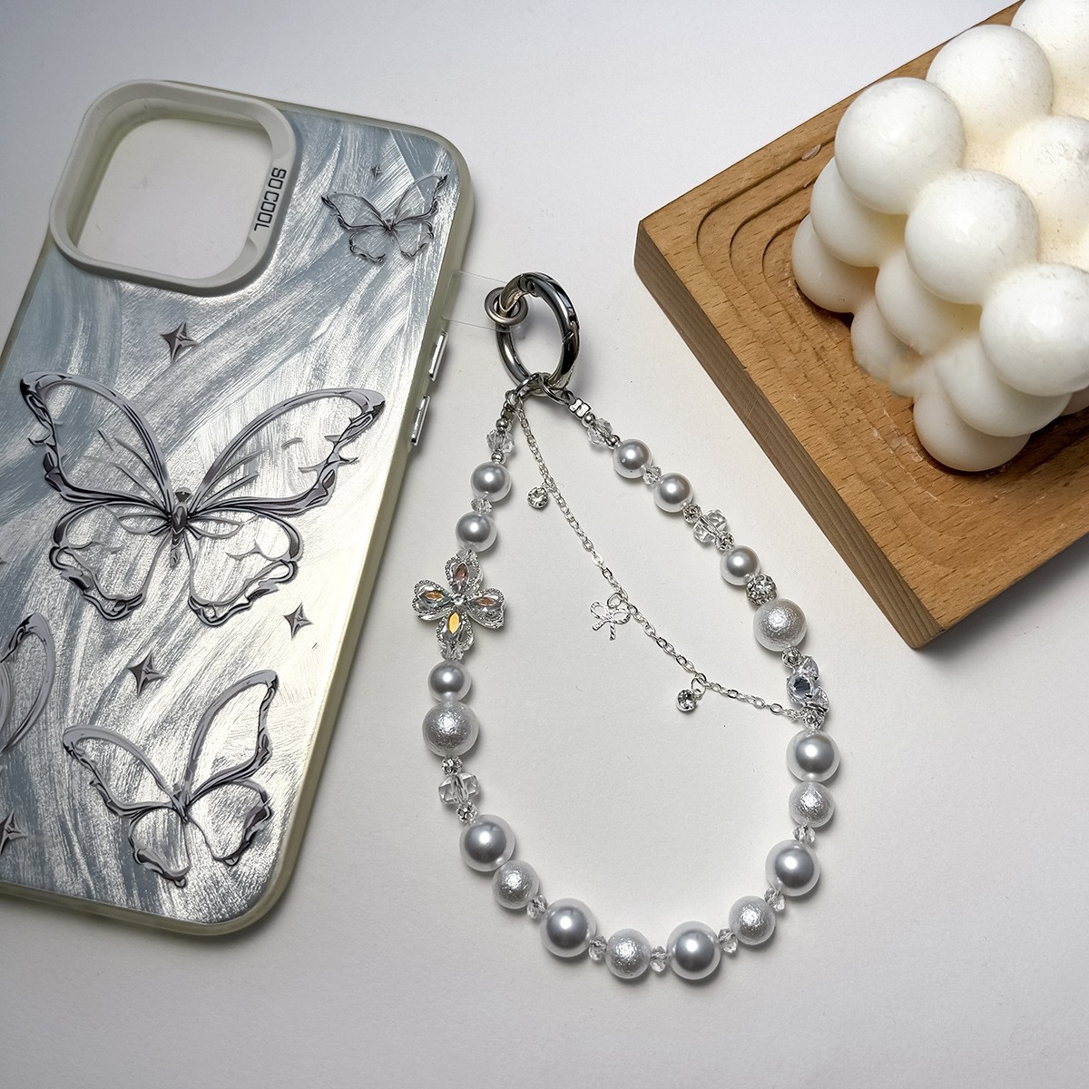 轻奢风合金锆石四叶草汽车钥匙扣链皱皮珍珠高级感水晶串珠链