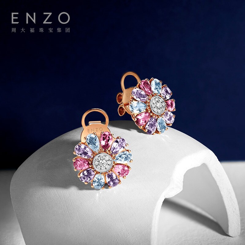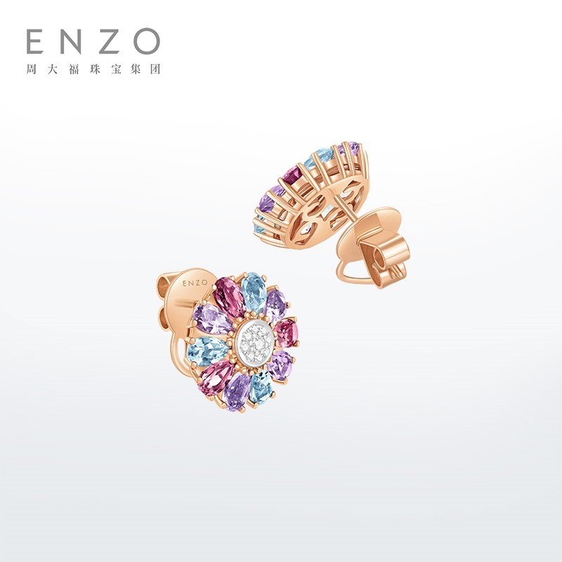 ENZO「舞裙系列」18K金多彩宝石钻石耳钉女EZV2177节日礼物