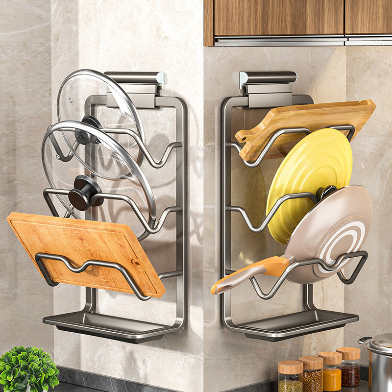 锅盖架壁挂免打孔砧板厨房置物架架子放置器收台面双层挂式墙面