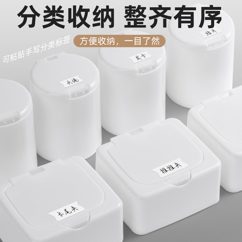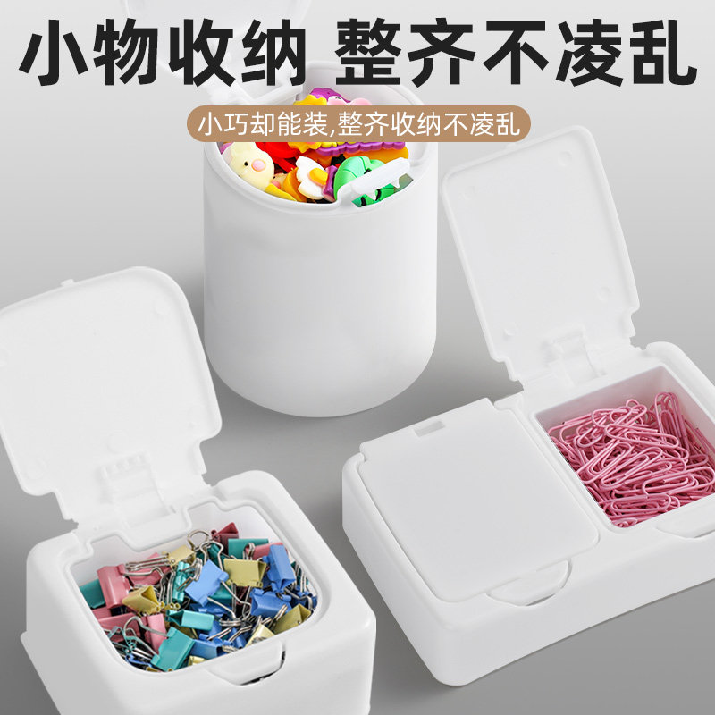 桌面按压式收纳盒长尾夹子回形针杂物整理带盖学生桌面小物品收纳盒办公好物化妆棉牙签棉签储物盒发夹杂物箱