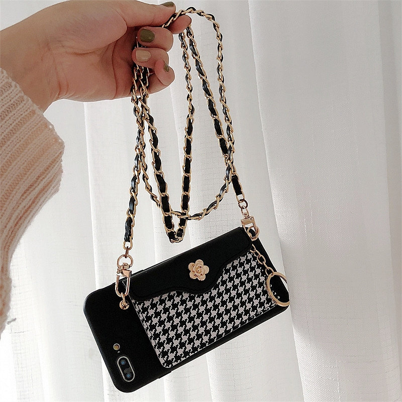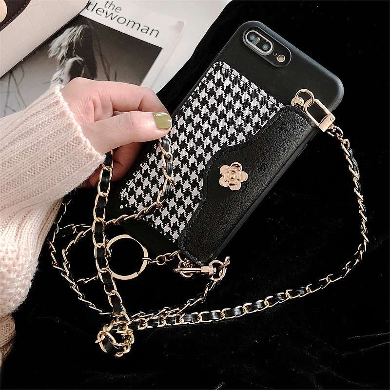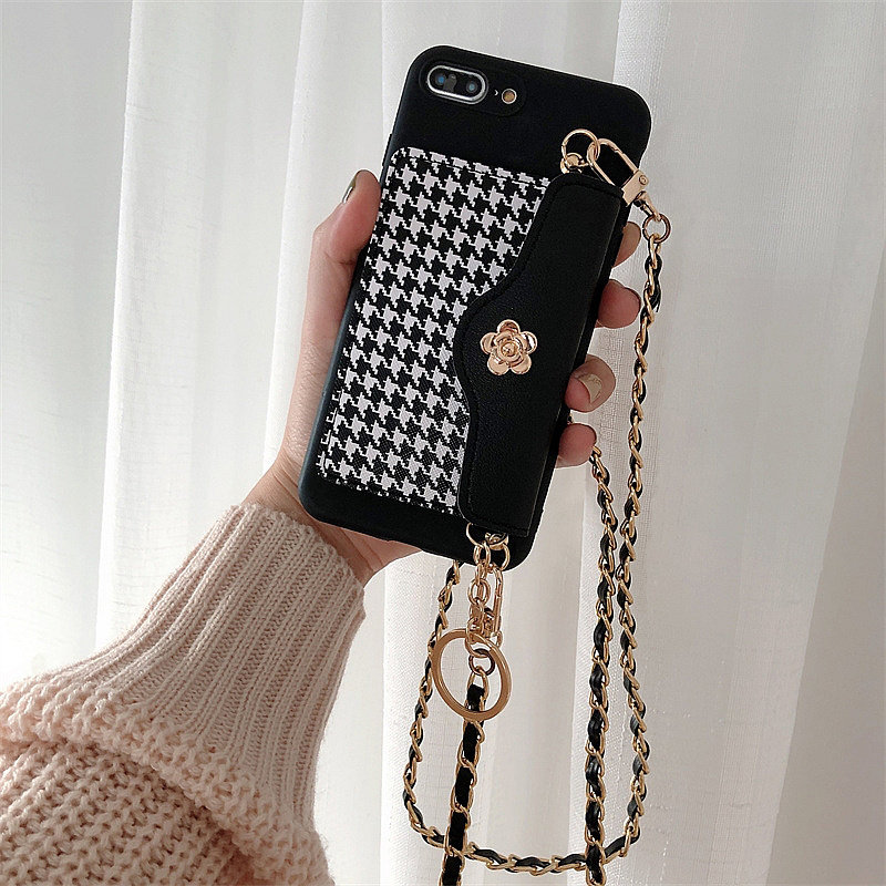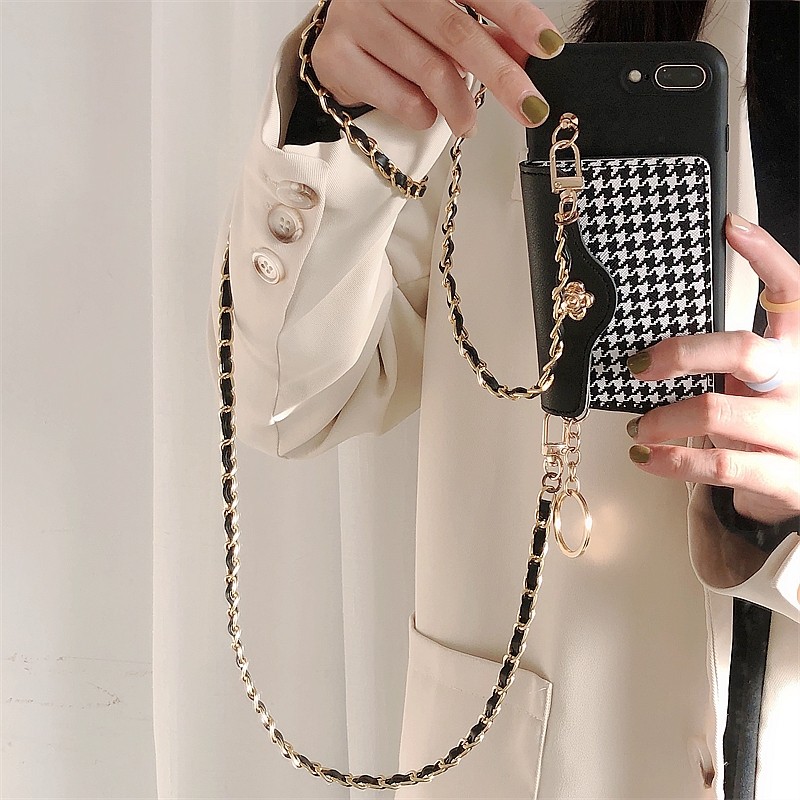 ins韩风气质千鸟格三星S23Ultra手机壳斜跨挂脖note20ultra保护套s23零钱包s21软壳s20网红女s23plus全包防摔
