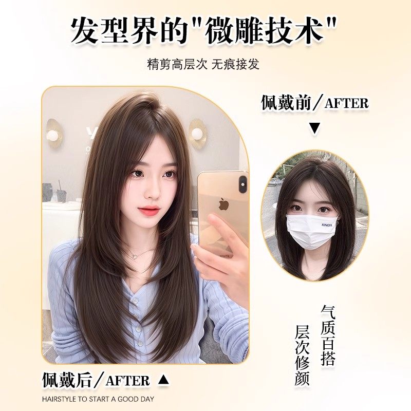 挂耳染发片卷发挑染假发片女一片式隐形彩色接发贴片蓬松漂染长发