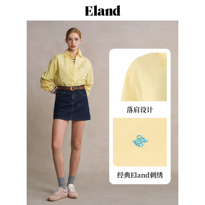 【法国亚麻】Eland衣恋氧气感衬衫女长袖内搭2025夏季新款淡人
