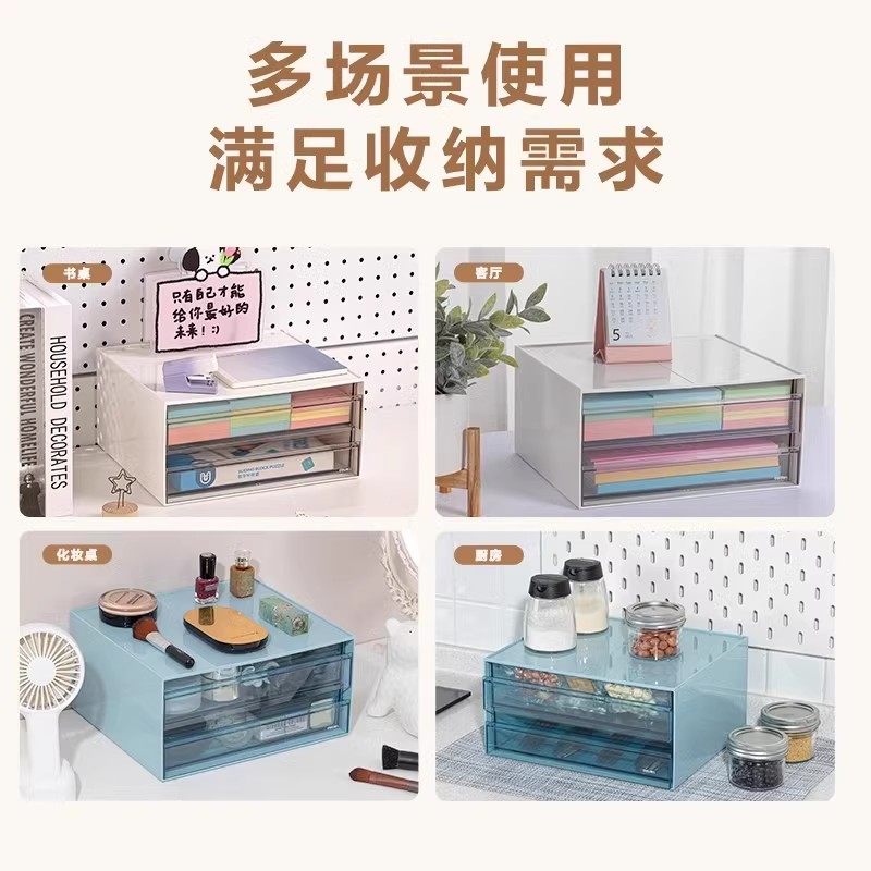 得力桌面文件柜带锁办公室桌面收纳神器抽屉式a4档案资料分类电脑桌面上多层置物架小型塑料收纳盒办公用品