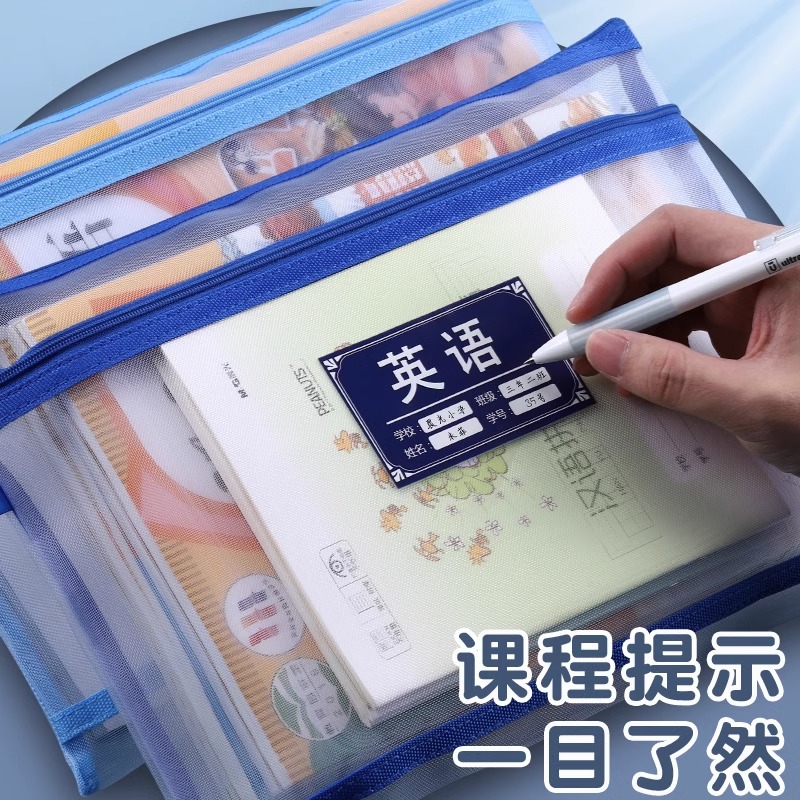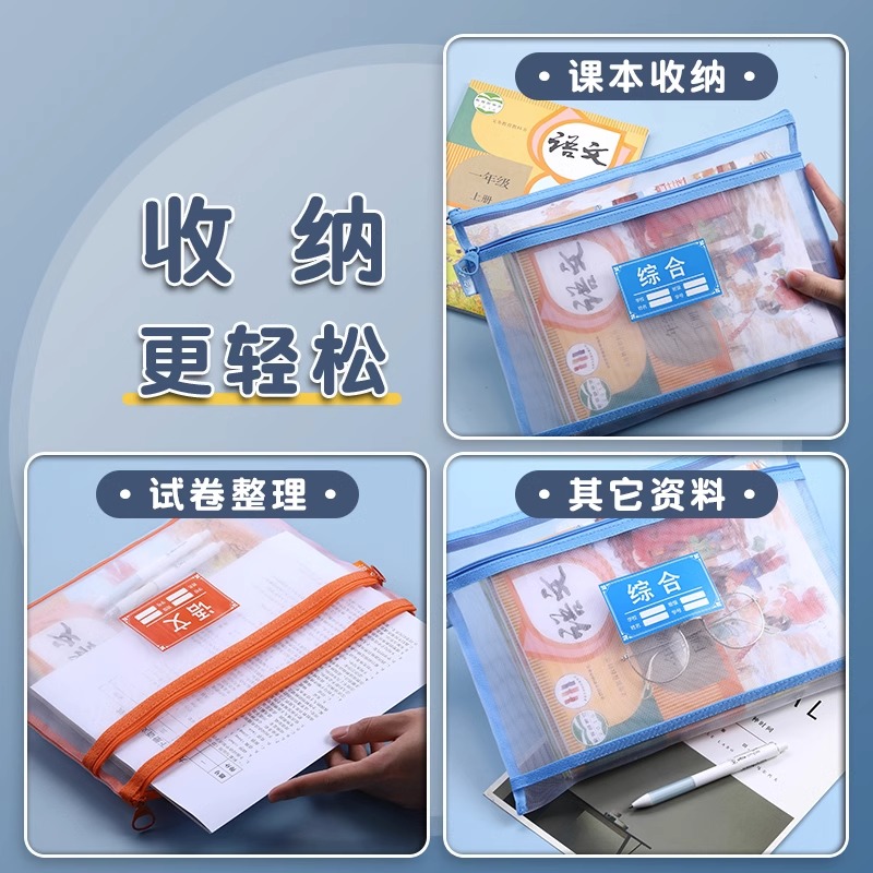 晨光文具学科科目分类文件袋透明拉链式小学生专用加厚双层网纱资料课本书本收纳袋子语文数学作业分科书袋a4