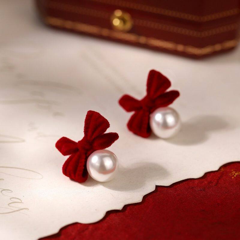 丝绒珍珠耳钉过新年高级感2026新款爆款马本命年耳环女耳饰精致