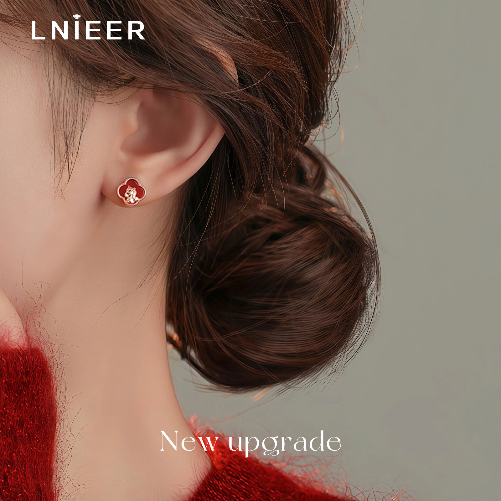 S999纯银针四叶草耳钉小众轻奢高级感耳环本命年秋冬红色耳饰马年