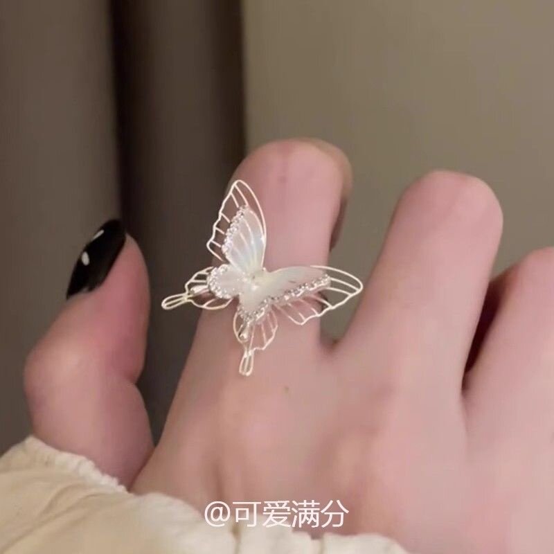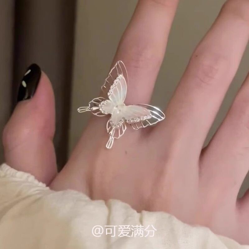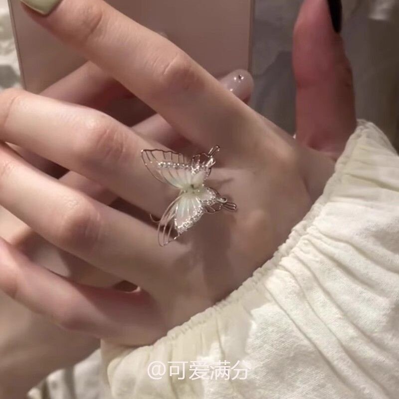 「指尖心动」粉色渐变双层镂空蝴蝶戒指夏天绝美高颜值清冷感指环