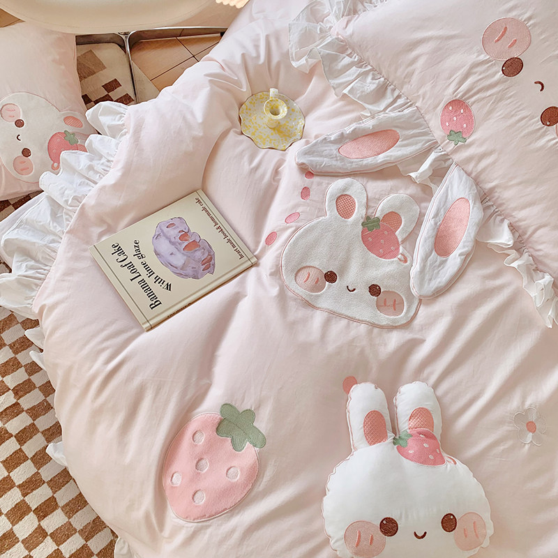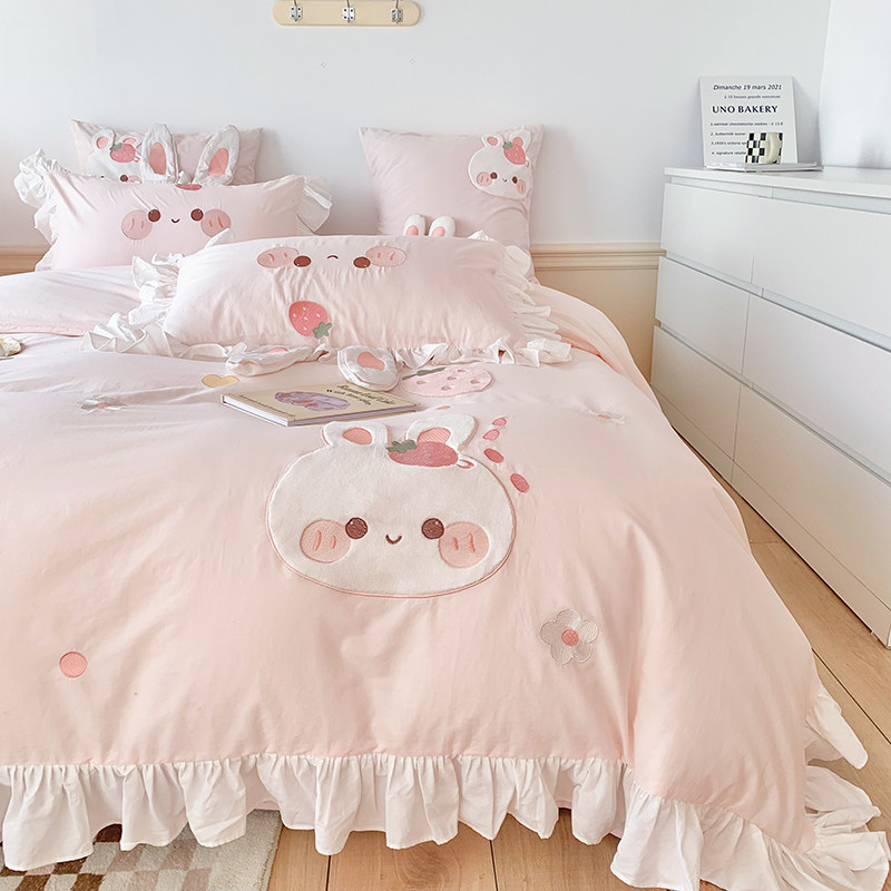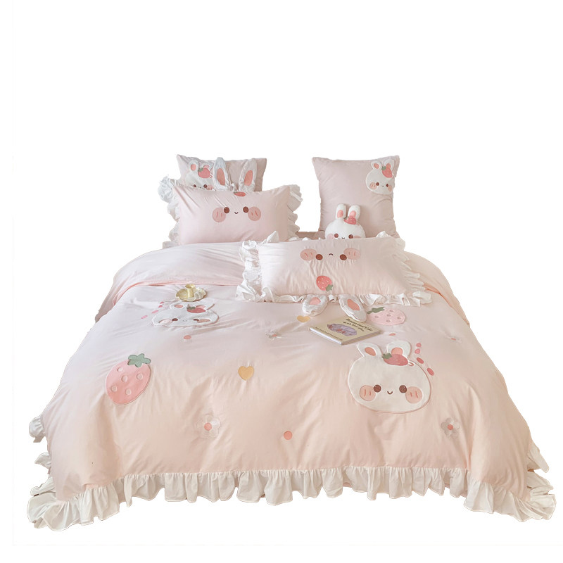 可爱少女心儿童全棉水洗棉四件套纯棉公主风小兔子被套床笠三件套