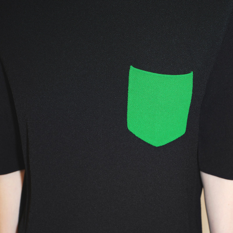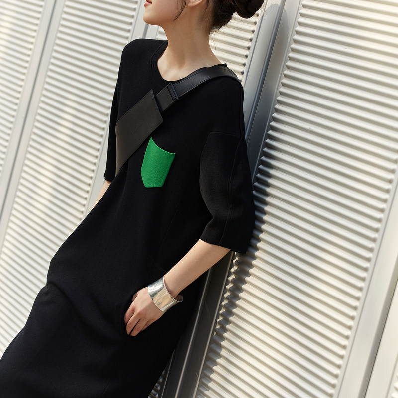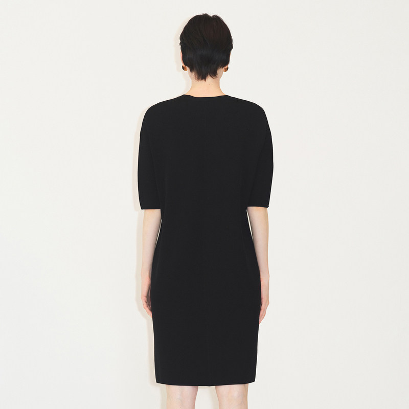 LESS泡泡袖短袖连衣裙女圆领黑色休闲宽松直筒针织裙子2M7G12730
