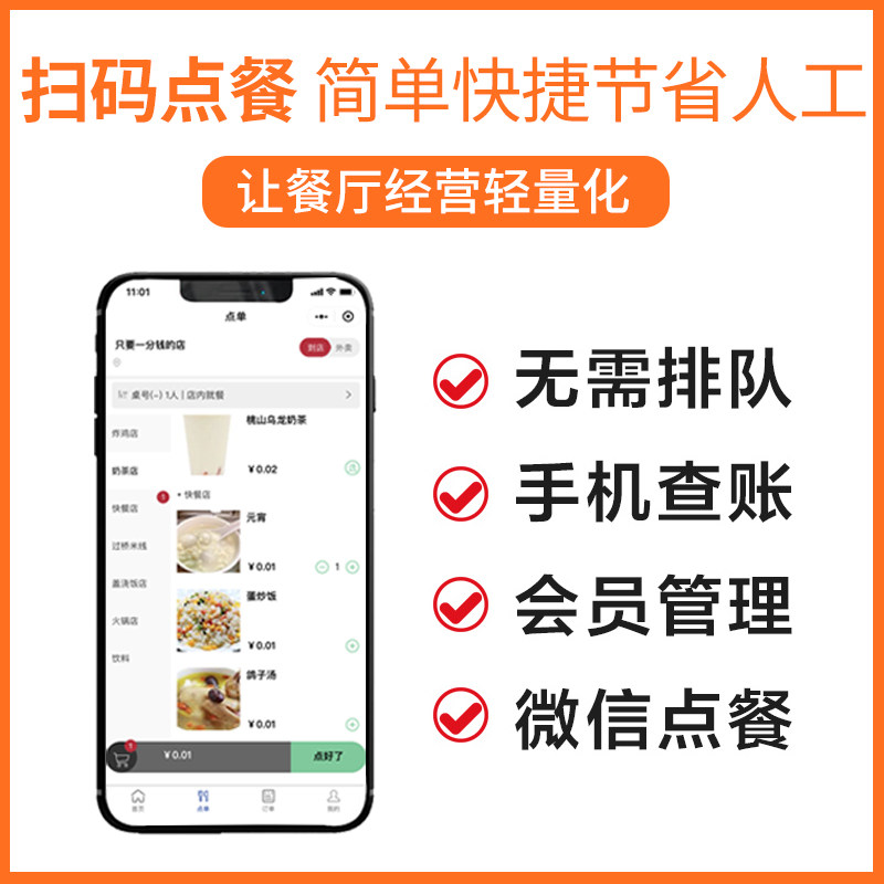 手机自助扫码点餐系统微信二维码点餐点菜机火锅餐饮收银系统软件 无需收银机小程序配云打印机使用