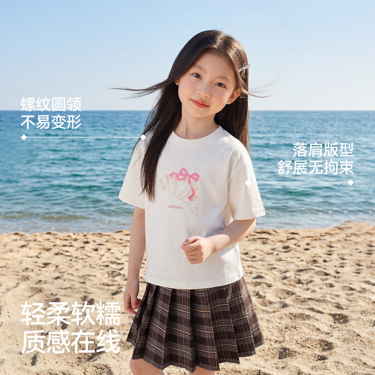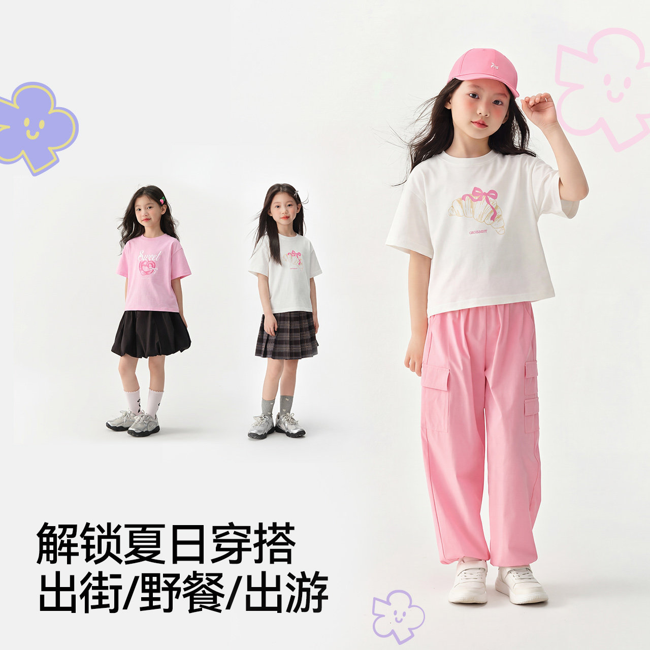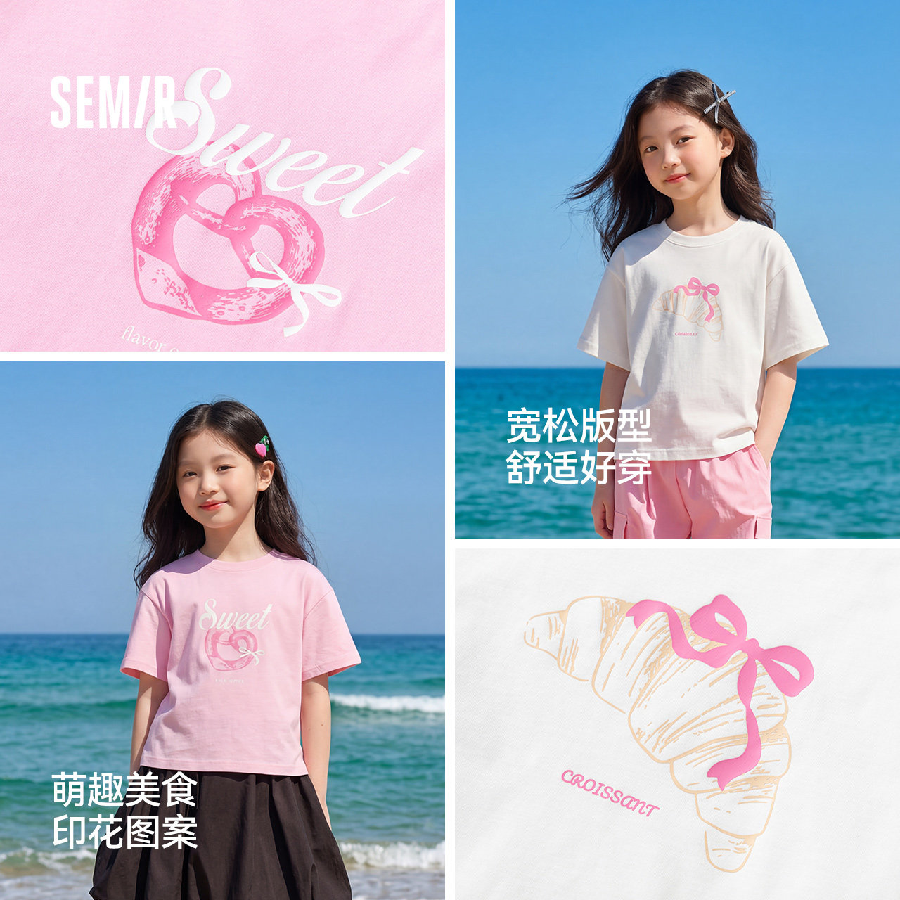 森马儿童短袖T恤2025夏新款纯棉美食印花上衣宽松女童装甜美洋气