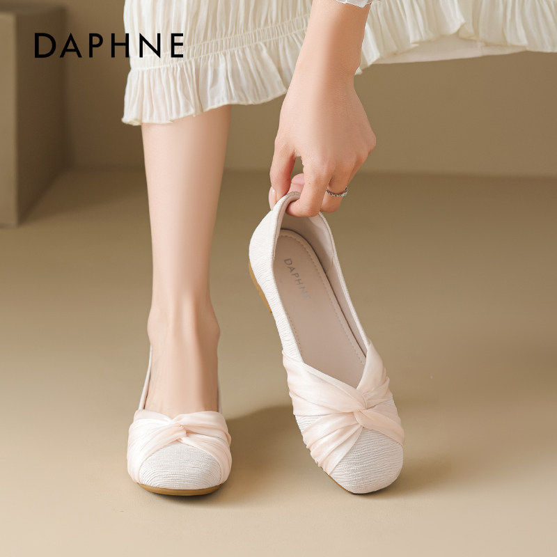 达芙妮浅口单鞋女2025新款秋季法式平底妈妈单鞋软底豆豆玛丽珍鞋