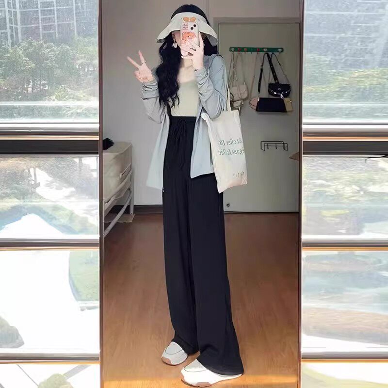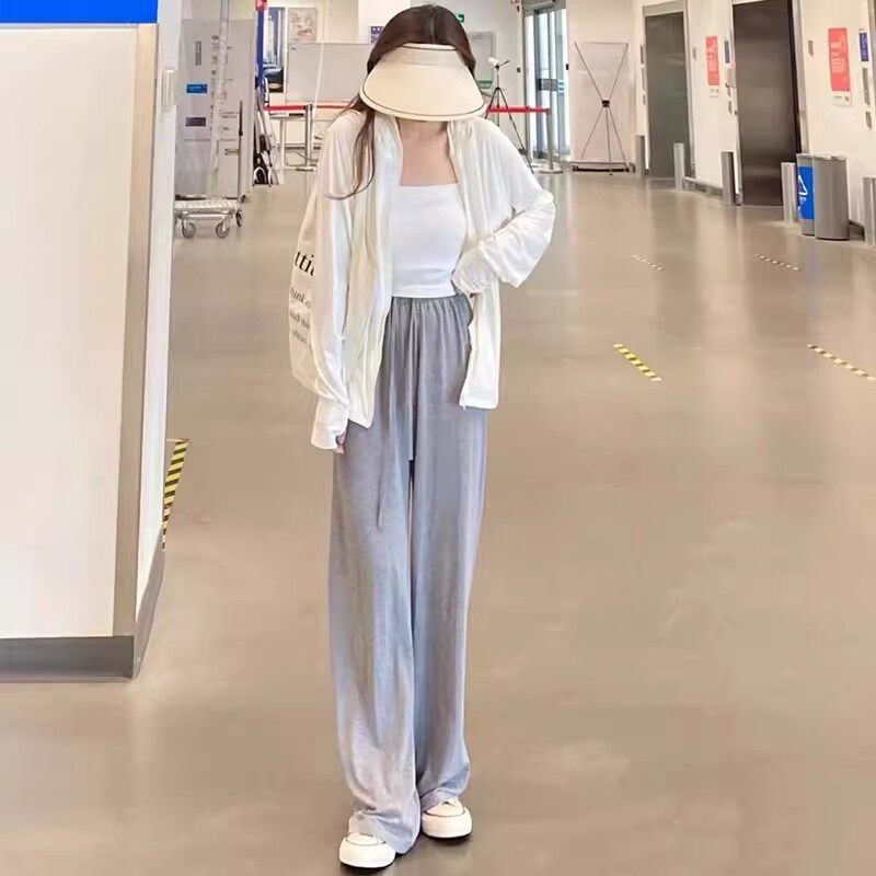 胖mm大码灰色阔腿裤女春秋高腰垂感直筒休闲舞蹈防蚊凉凉裤200斤