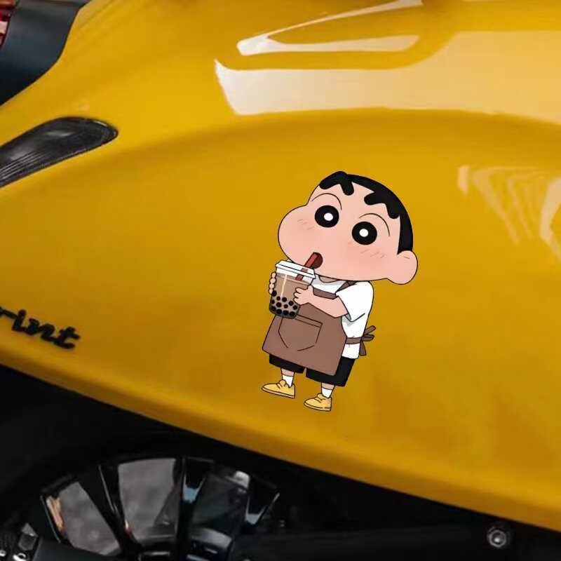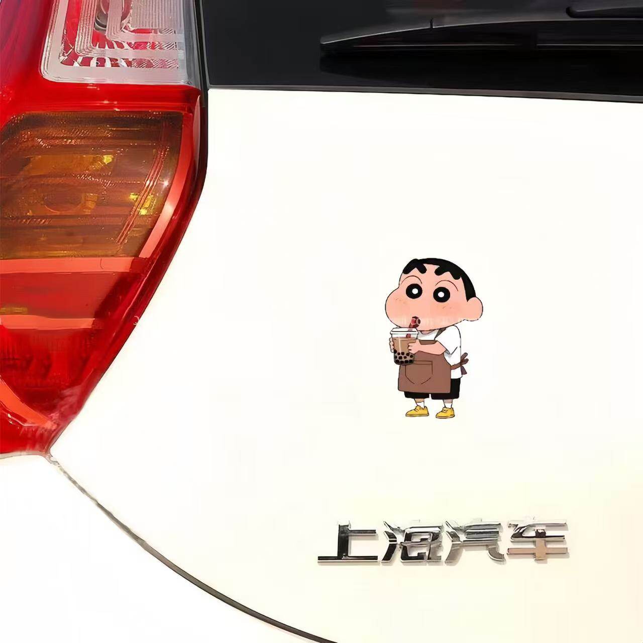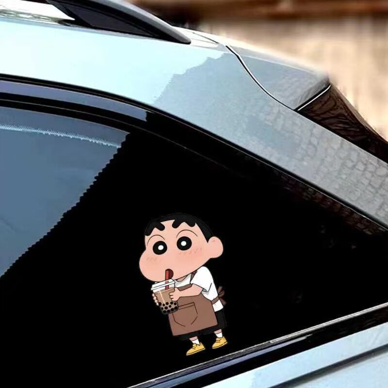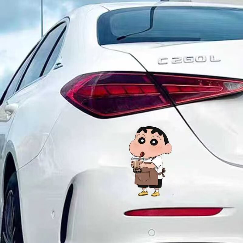 蜡笔小新喝奶茶汽车贴纸电动车划痕遮挡卡通动漫贴纸门窗装饰贴纸