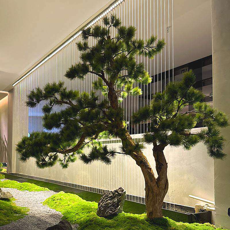 仿真迎客松造景大型假树植物室内玄关楼梯下中式装饰松树绿植景观