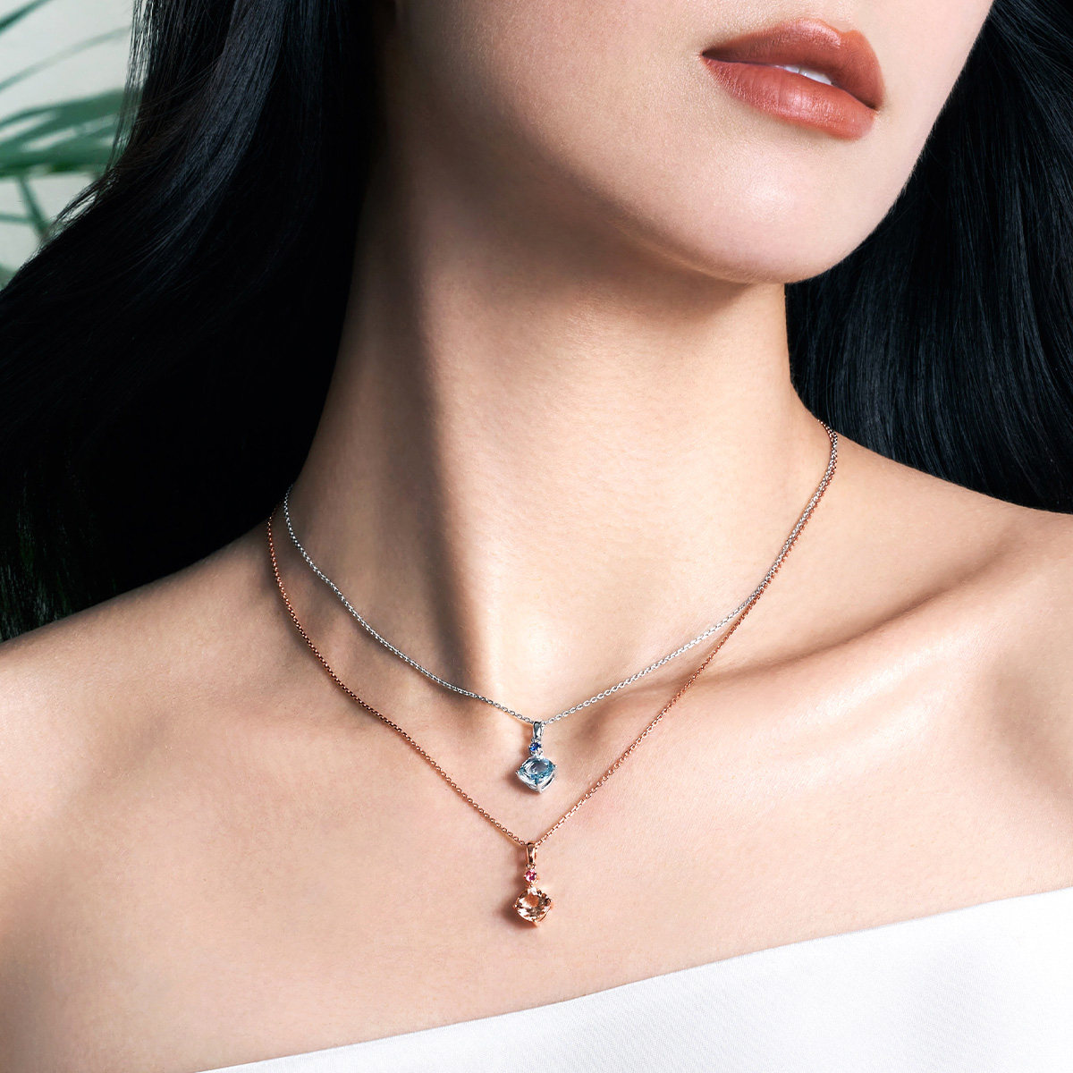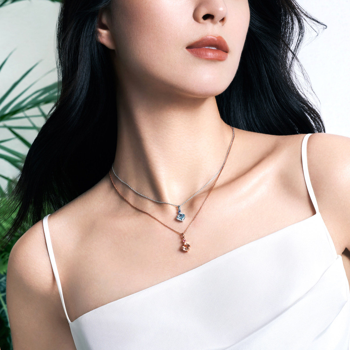 ENZO 简约柔美 18K金摩根石碧玺吊坠女送银链新春礼物