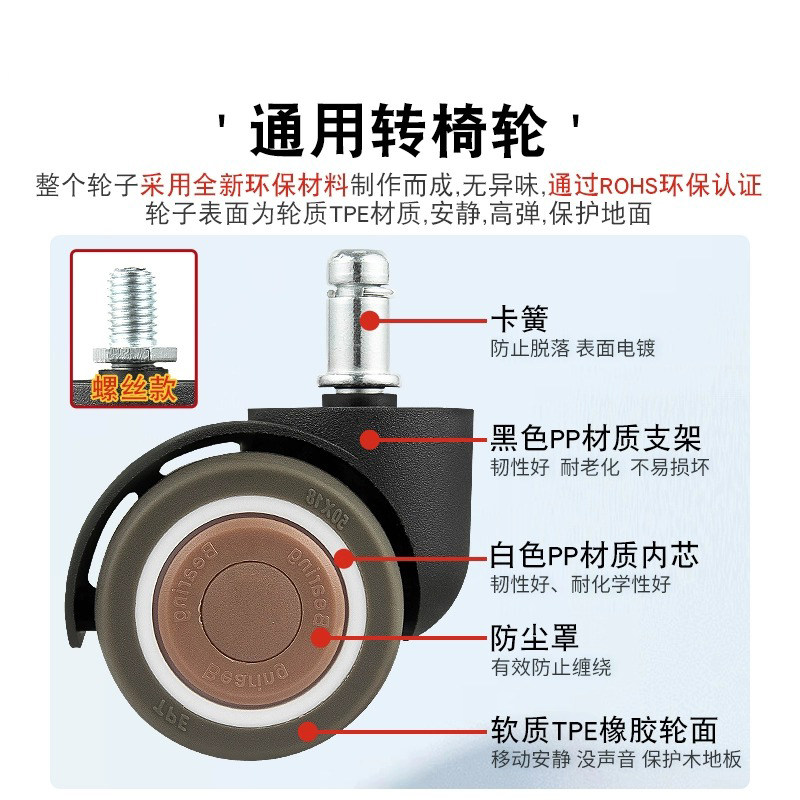 转椅椅子轮子电脑椅万向轮静音电竞椅办公椅脚轮橡胶滚轮座椅滑轮