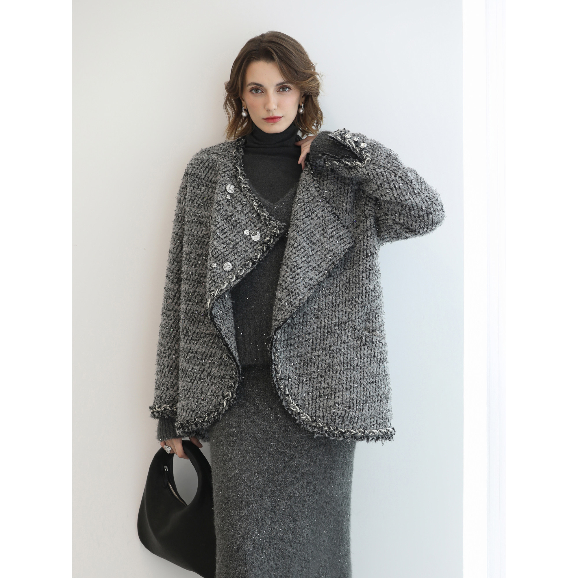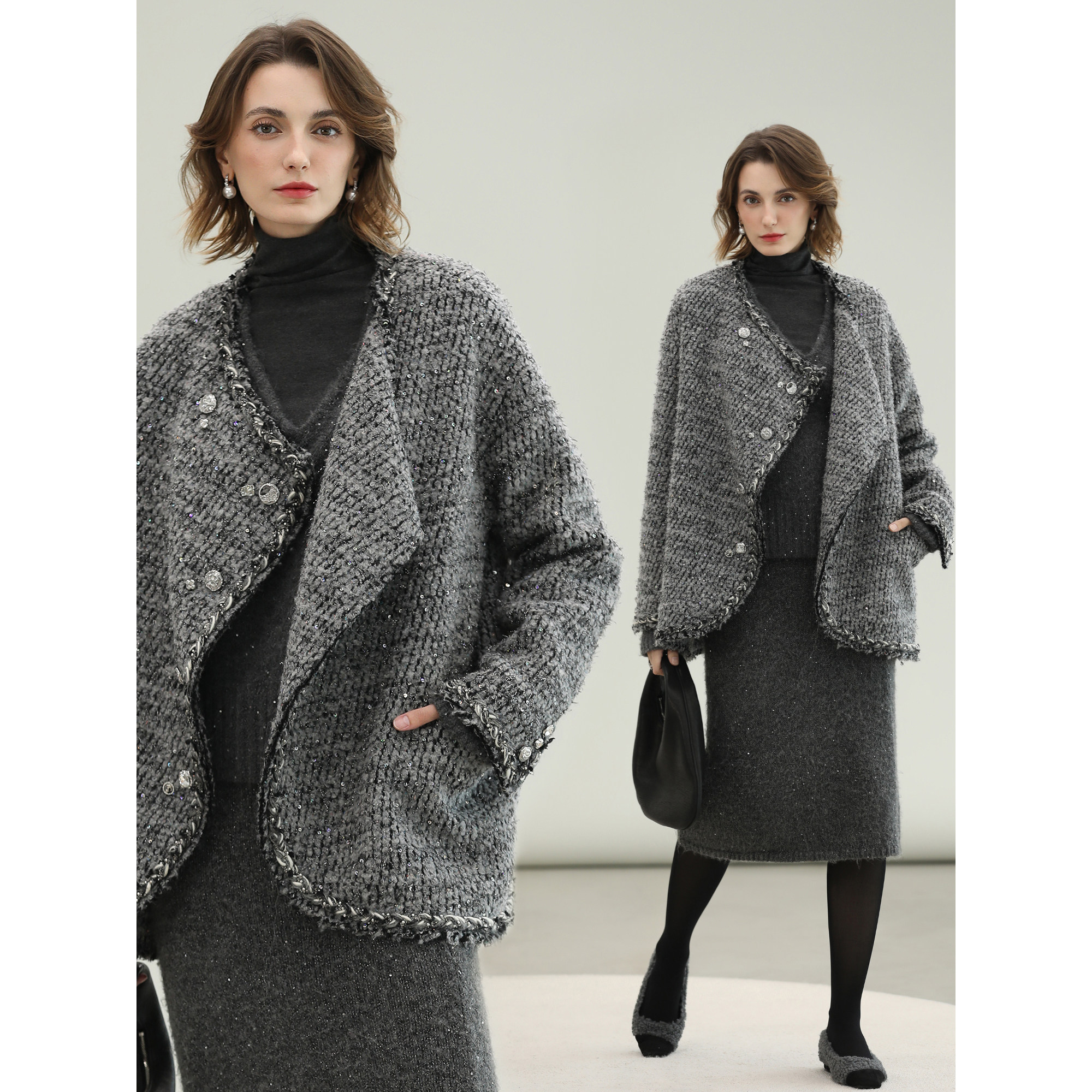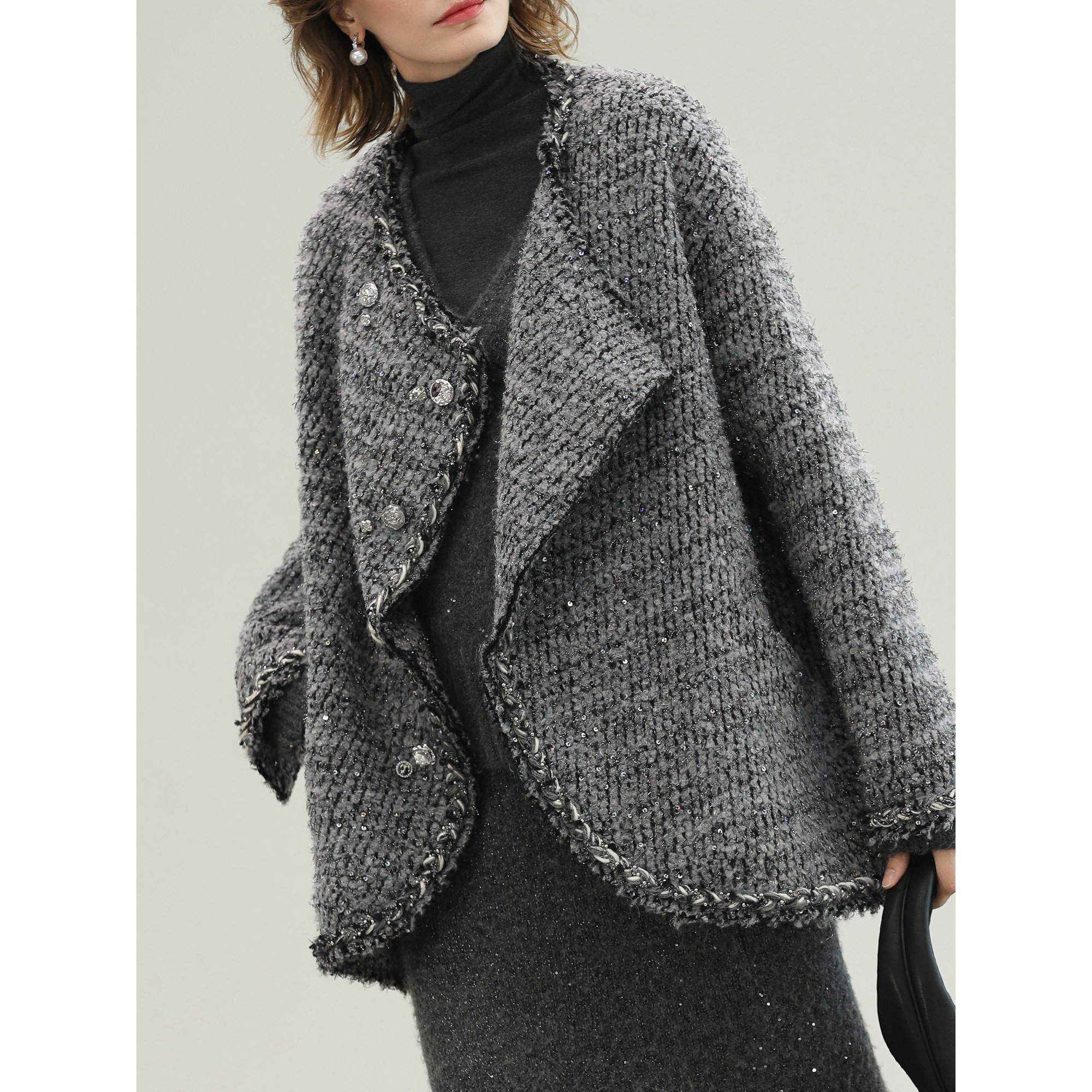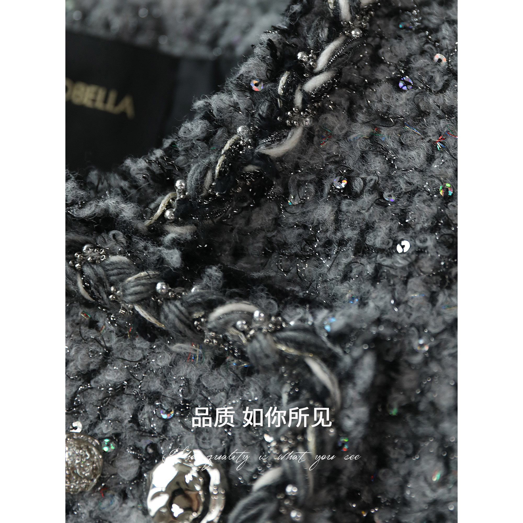 COCOBELLA小香风微廓形粗花呢通勤西装女荡领毛呢外套WL3105