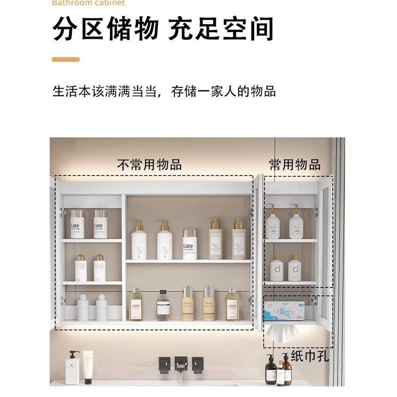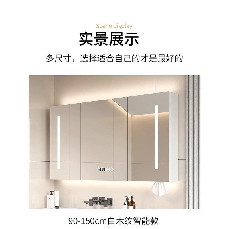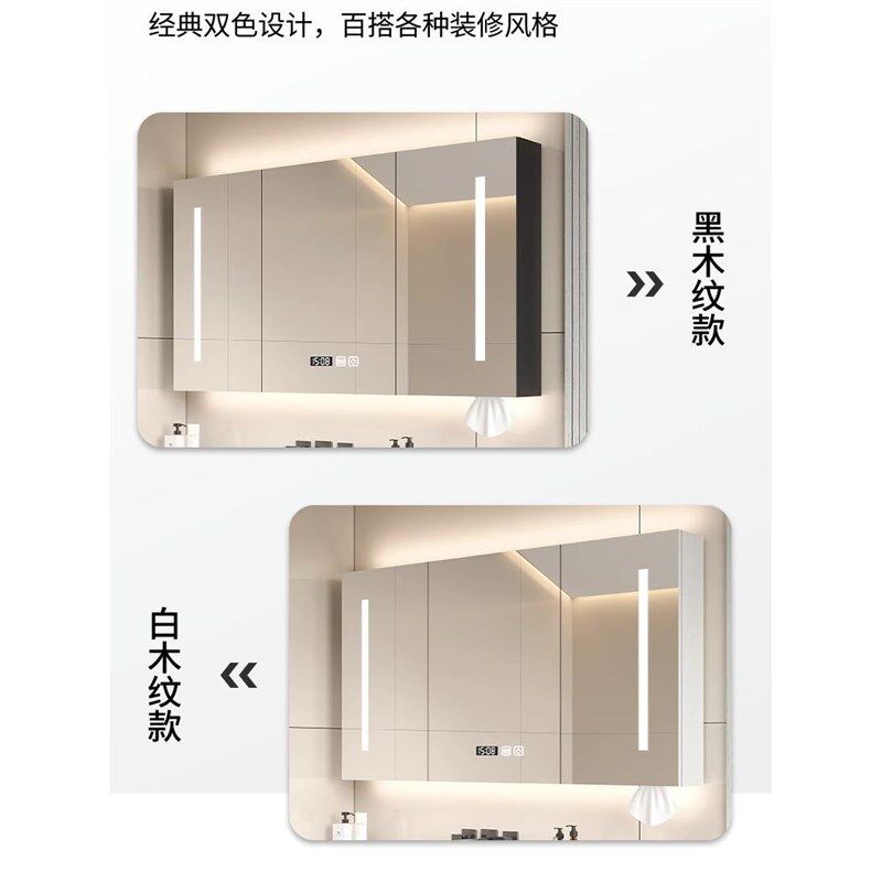 实木智能浴室镜柜挂墙式卫生间浴室镜带灯除雾洗手间W镜子带置物