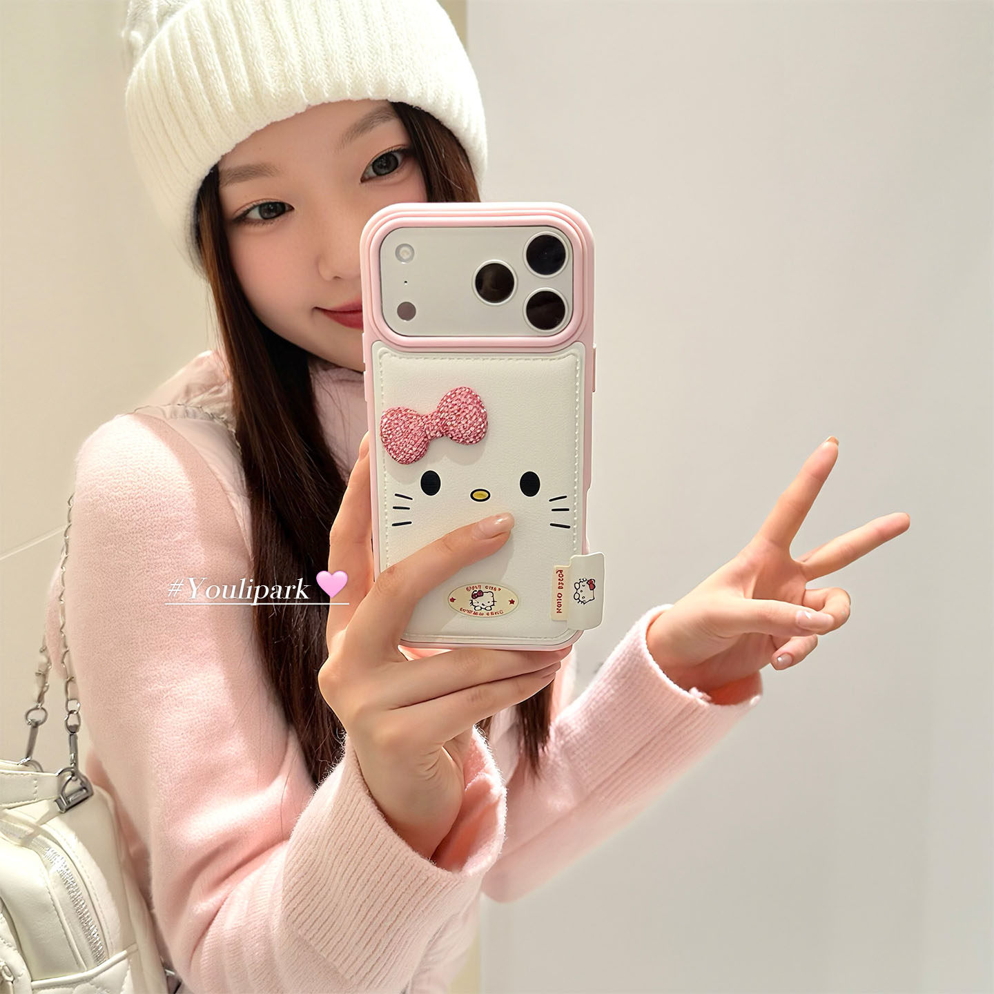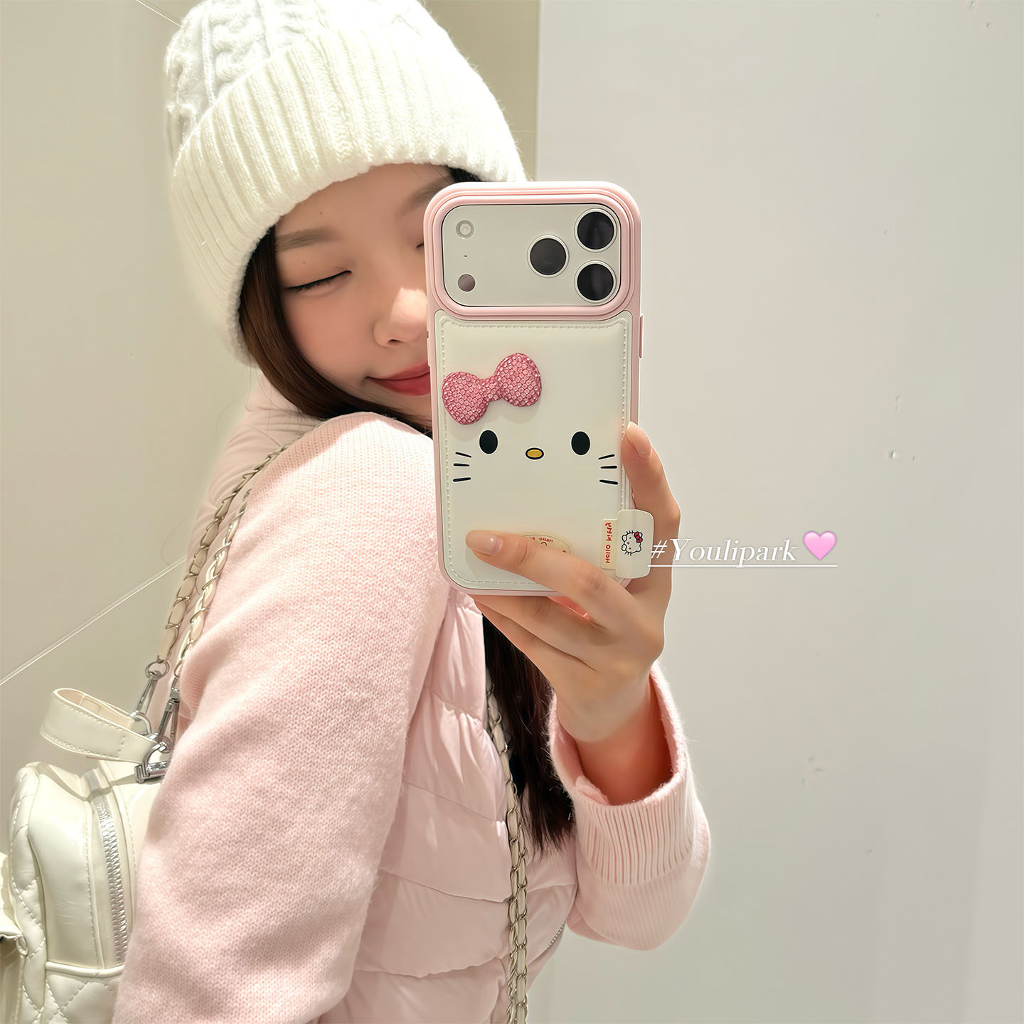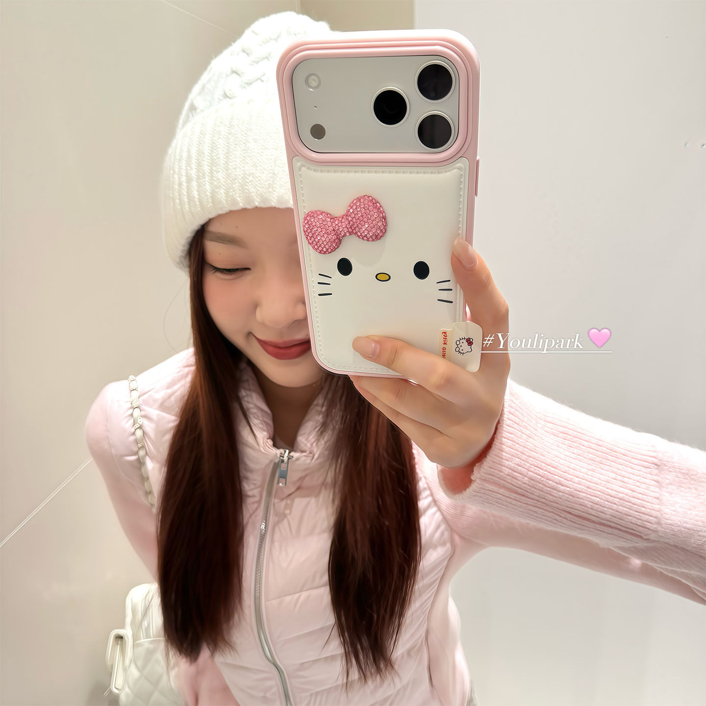 由里公园ins韩系甜美可爱闪钻蝴蝶结猫咪17适用17pro苹果17ProMax手机壳iPhone16全包14新款16Promax保护套女
