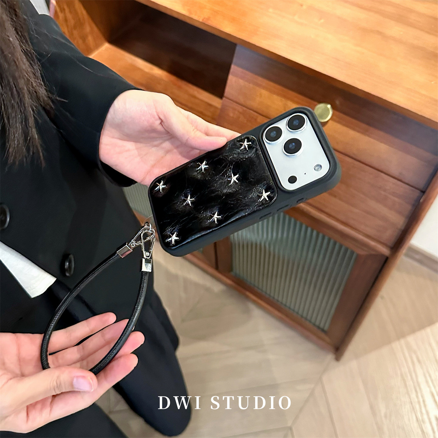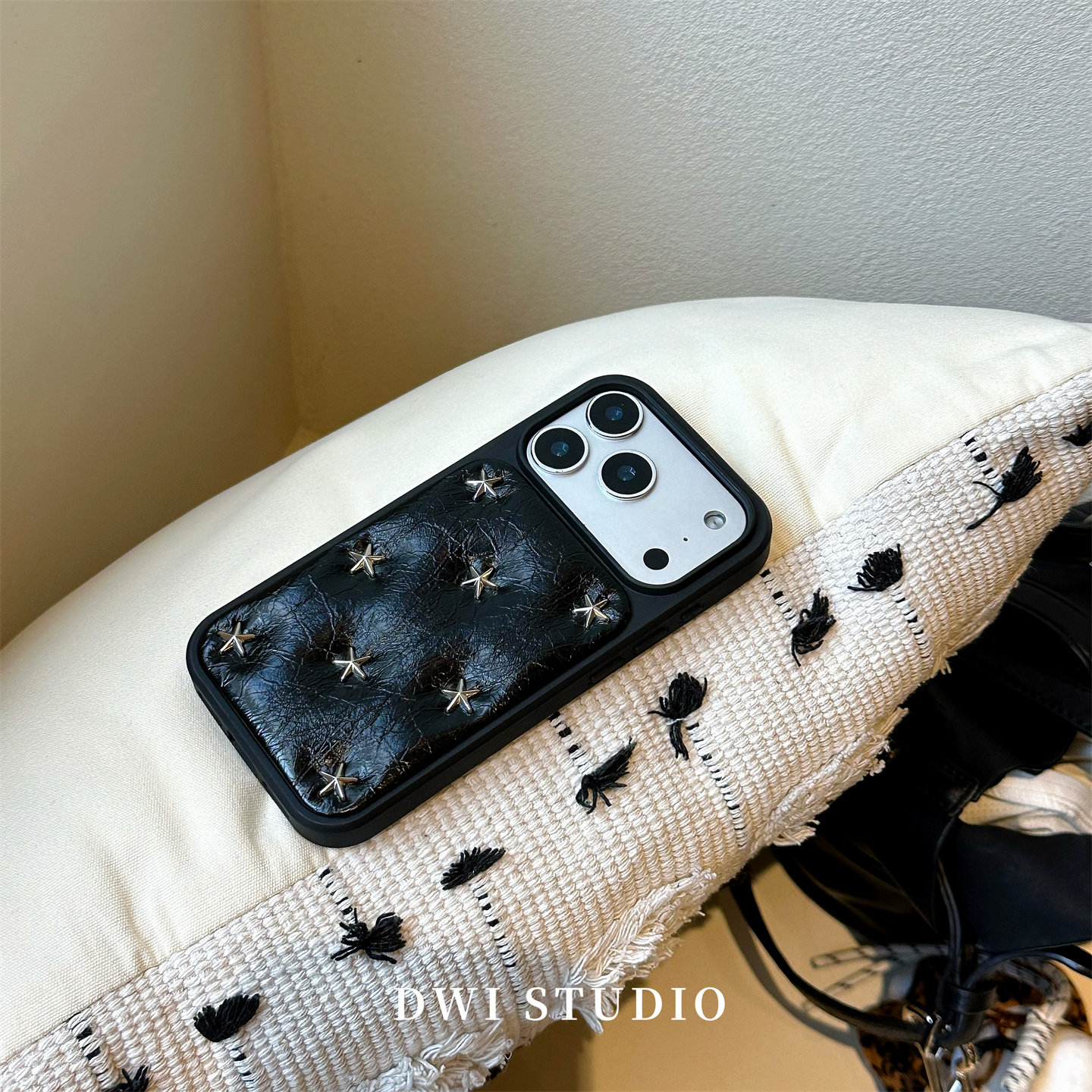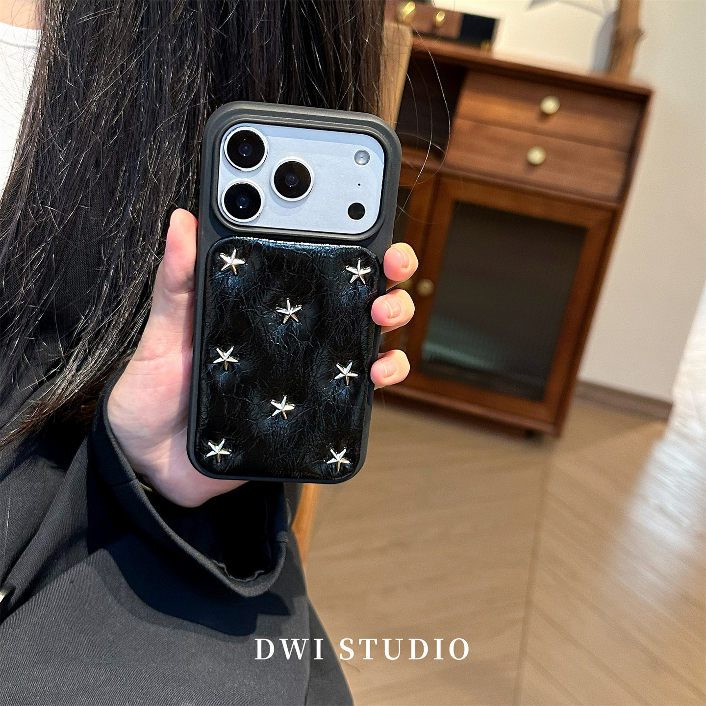 DWI STUDIO复古高级感铆钉星星挂绳手机壳17promax全包AI按键适用苹果16promaxiPhone16壳15/14
