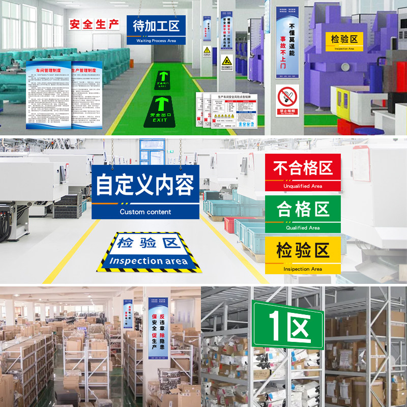工厂生产车间分区标识牌定做仓库区域划分标示定制pvc广告牌厂房货架成品检验区物料分类亚克力指示标志挂牌