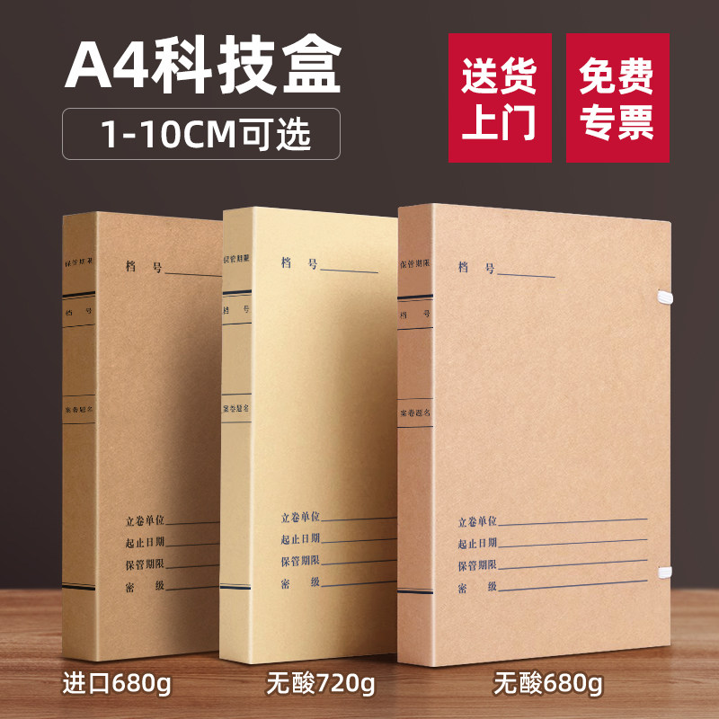 10个新科技档案盒a4进口无酸纸7528工程档案盒牛皮纸档案盒柜标准竣工资料盒文件盒收纳整理盒定制定做logo