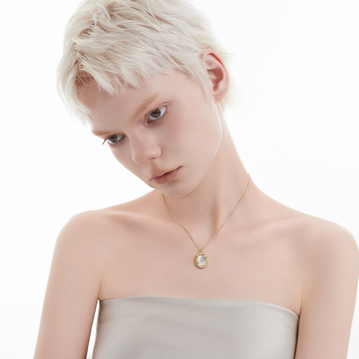 AmberLollipop天然白贝母项链女方形吊坠锁骨链小众颈链百搭配饰