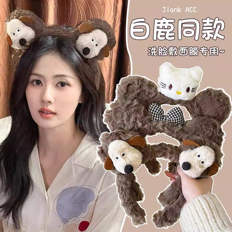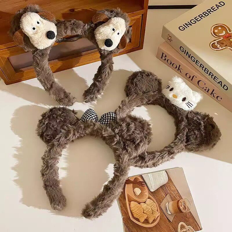 韦雪同款黑皮猫耳朵豹纹毛绒发箍款可爱洗脸发卡女秋冬