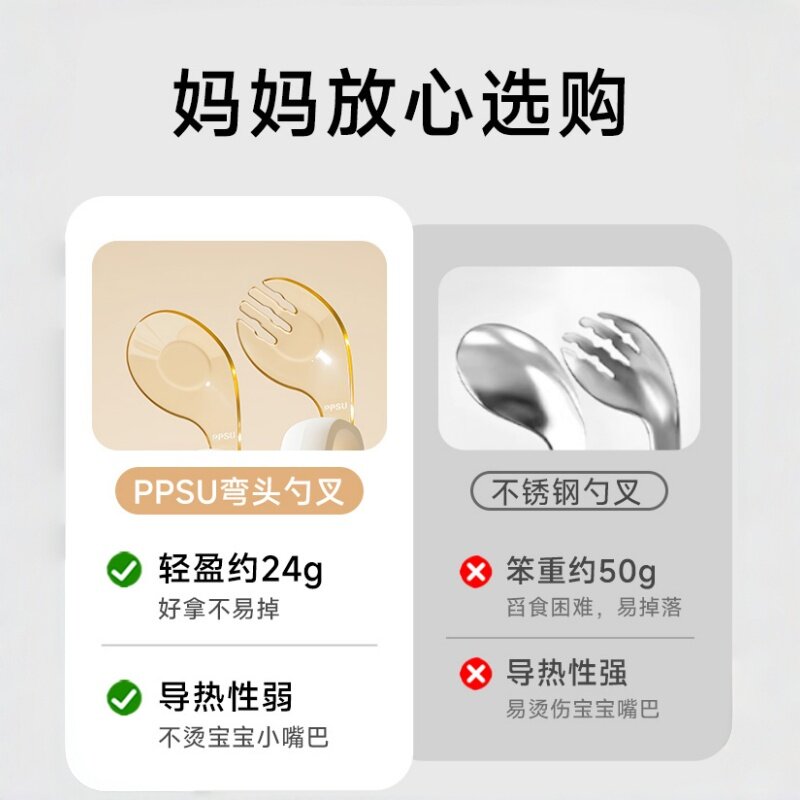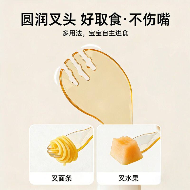 婴儿辅食勺ppsu勺叉勺儿童吃饭勺喂饭勺宝宝训练叉勺自主进食水果