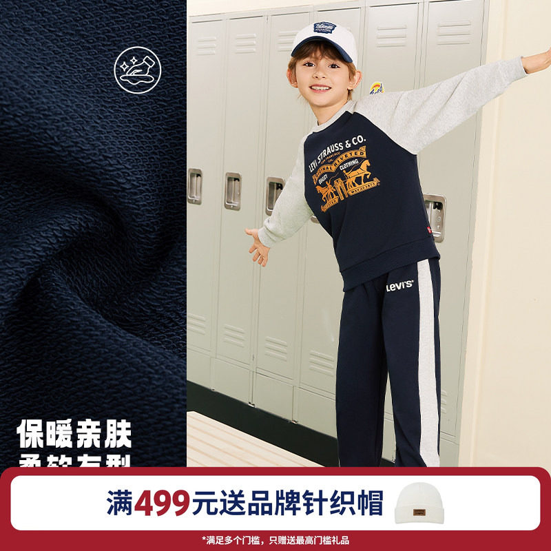 【加绒套装】Levis李维斯男童套装儿童运动童装卫衣2025冬季保暖