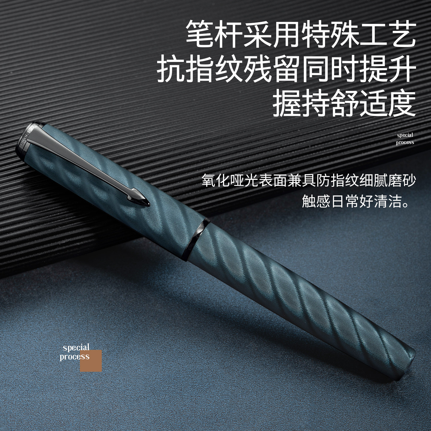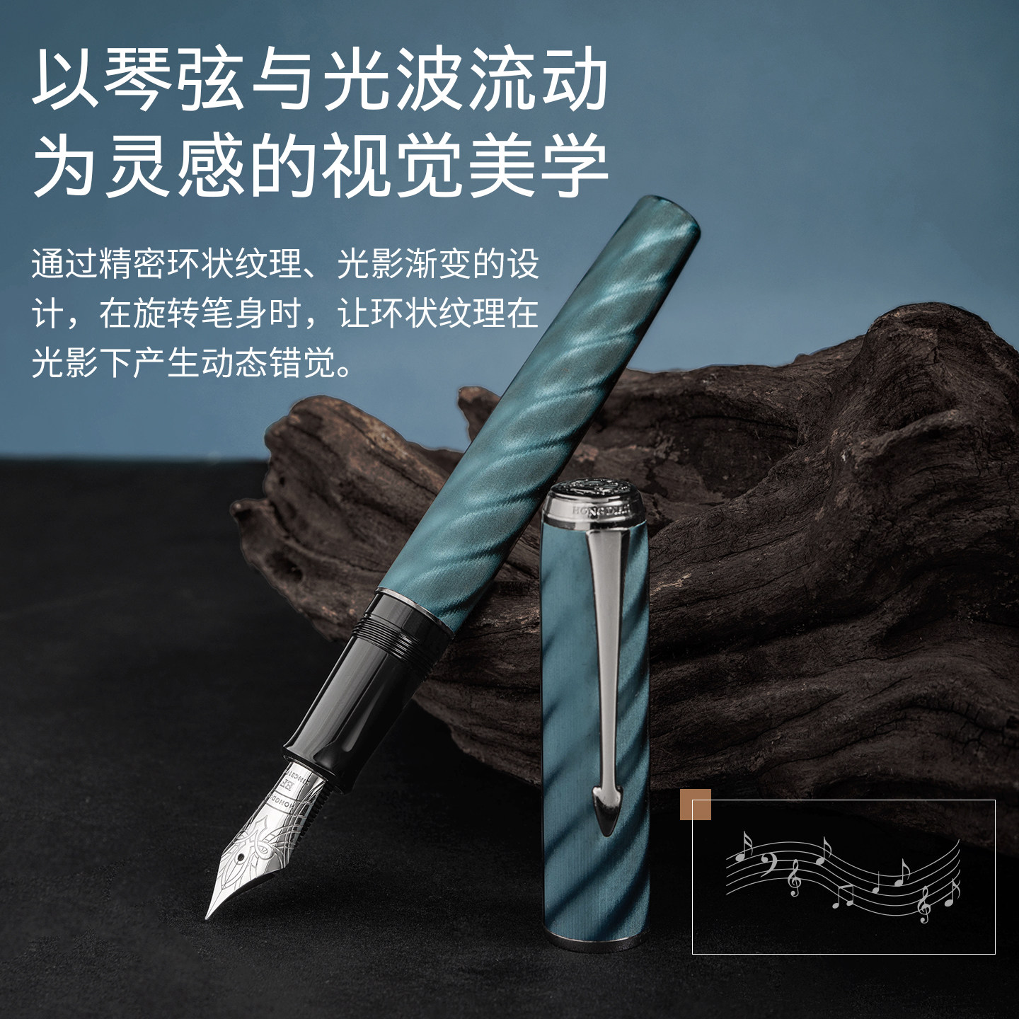 42号笔尖搭配硬橡胶木笔舌,铝合金材质笔体