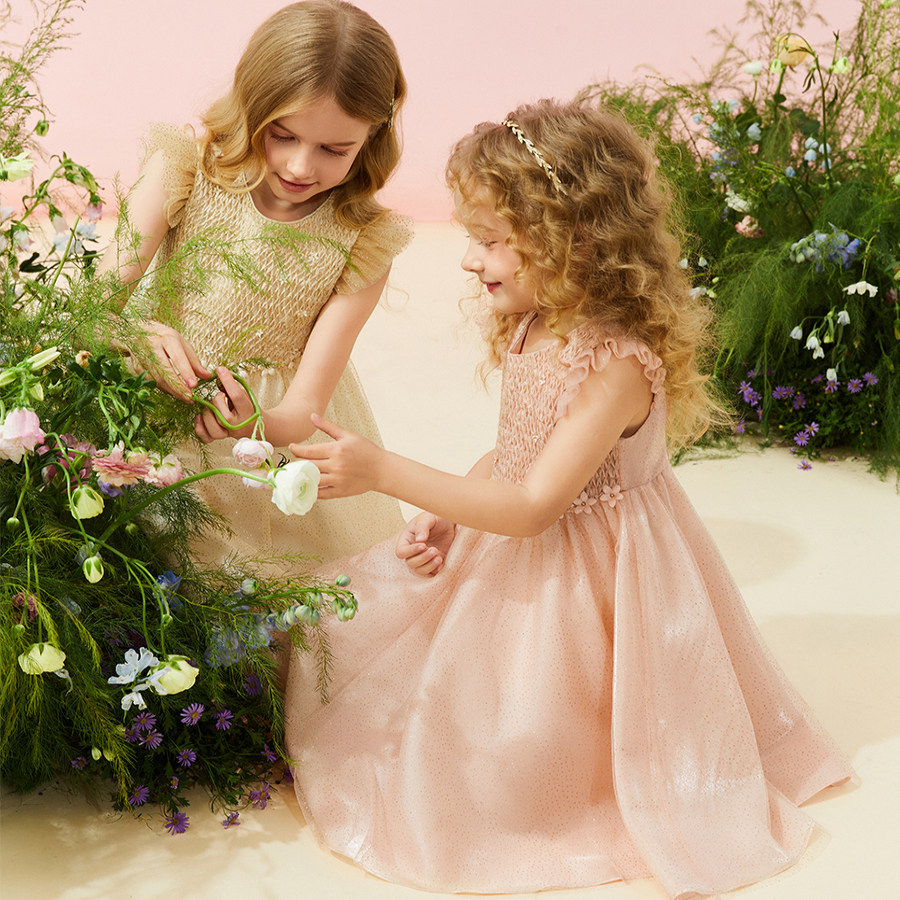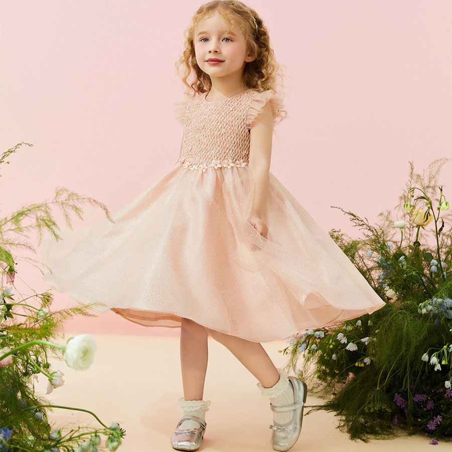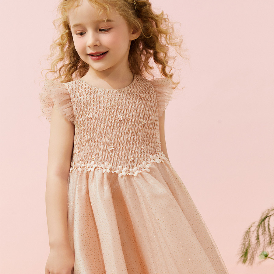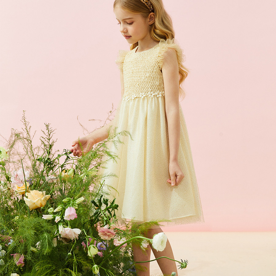 Petite Marguerite小雏菊童装·手工蜂巢褶钉花网纱小公主连衣裙