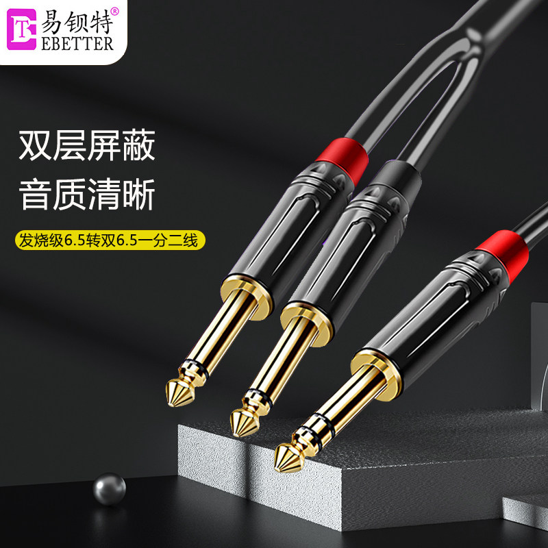 多功能6.5转双6.5音频线纯铜 6.5一分二大三芯转双大二芯电子琴线