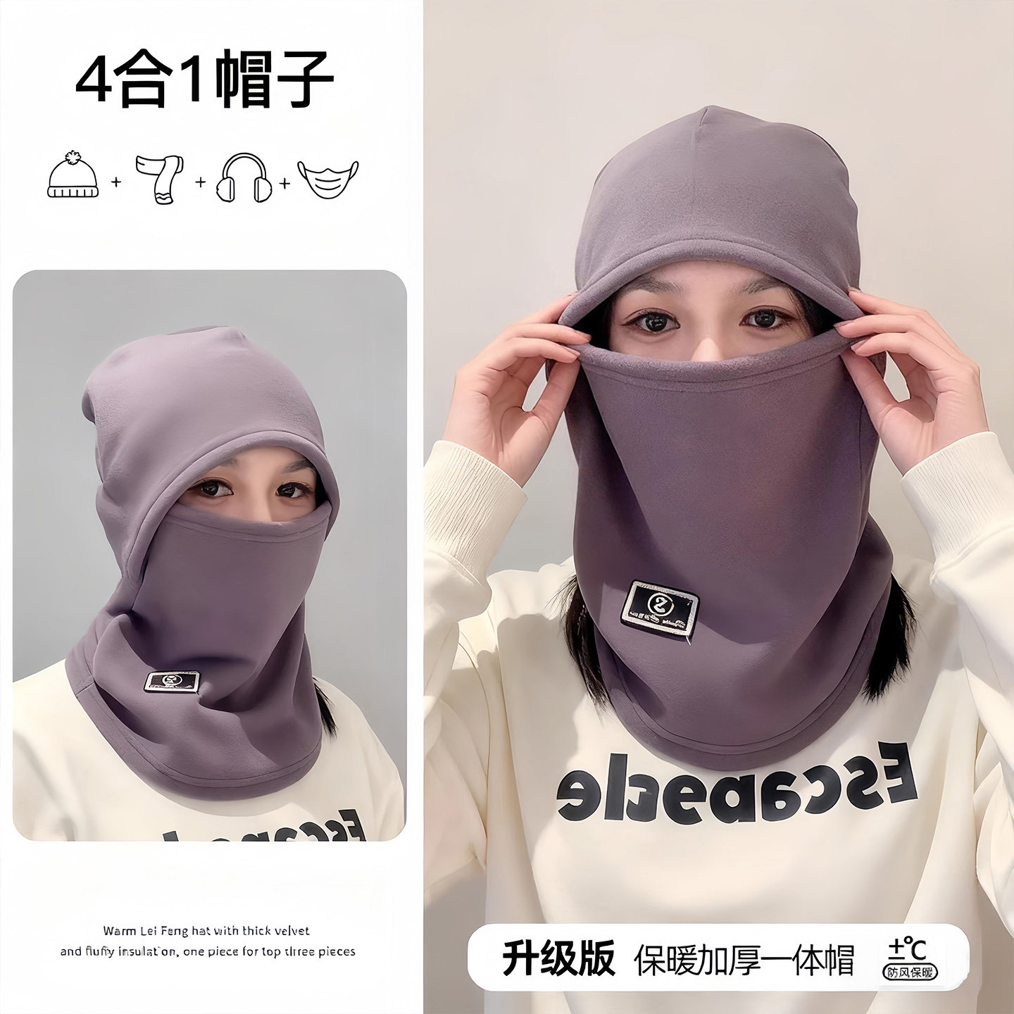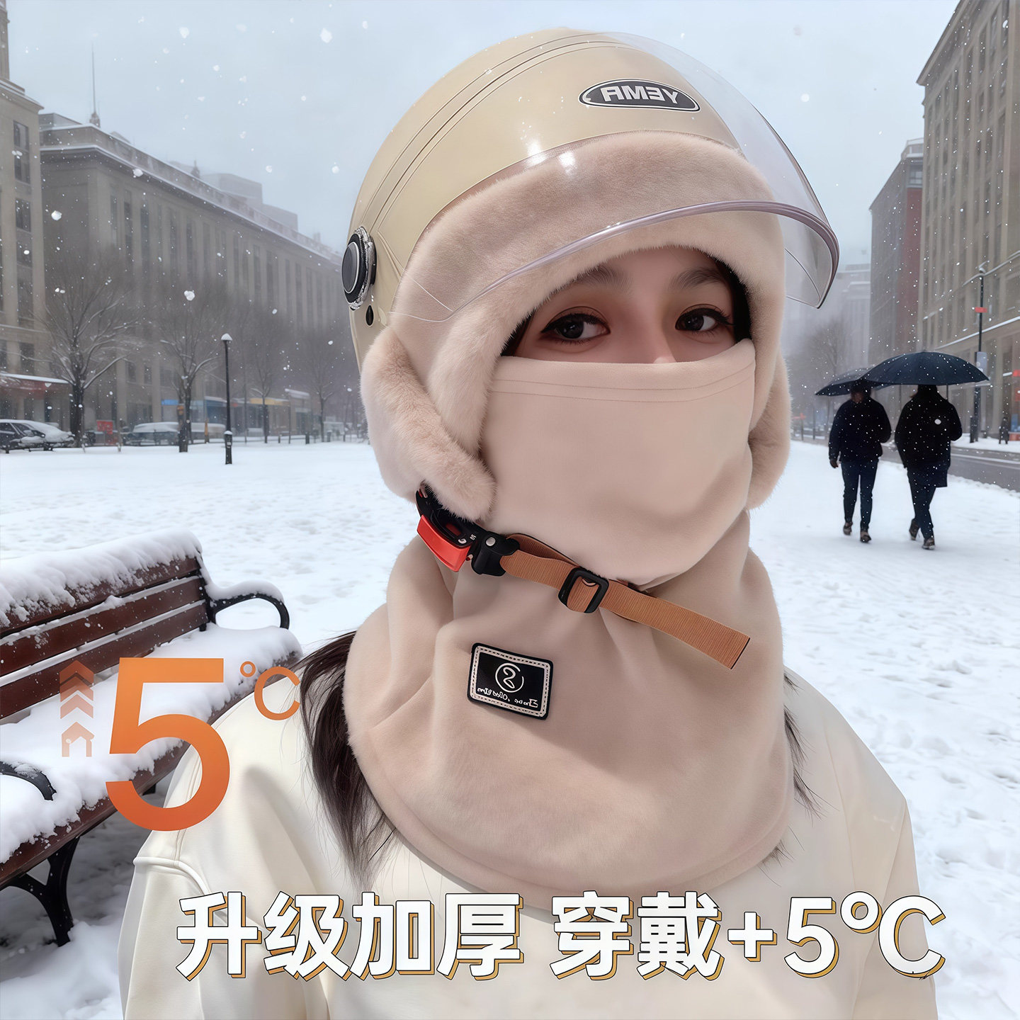 冬季骑车面罩围脖帽子一体男女冬北套头盔内胆帽加绒保暖护耳防寒