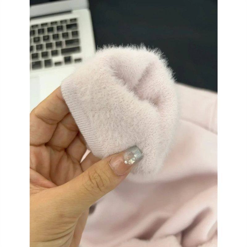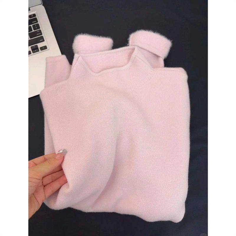 独特粉色毛衣半高领加绒加厚长袖针织打底衫女冬季新款大码内搭