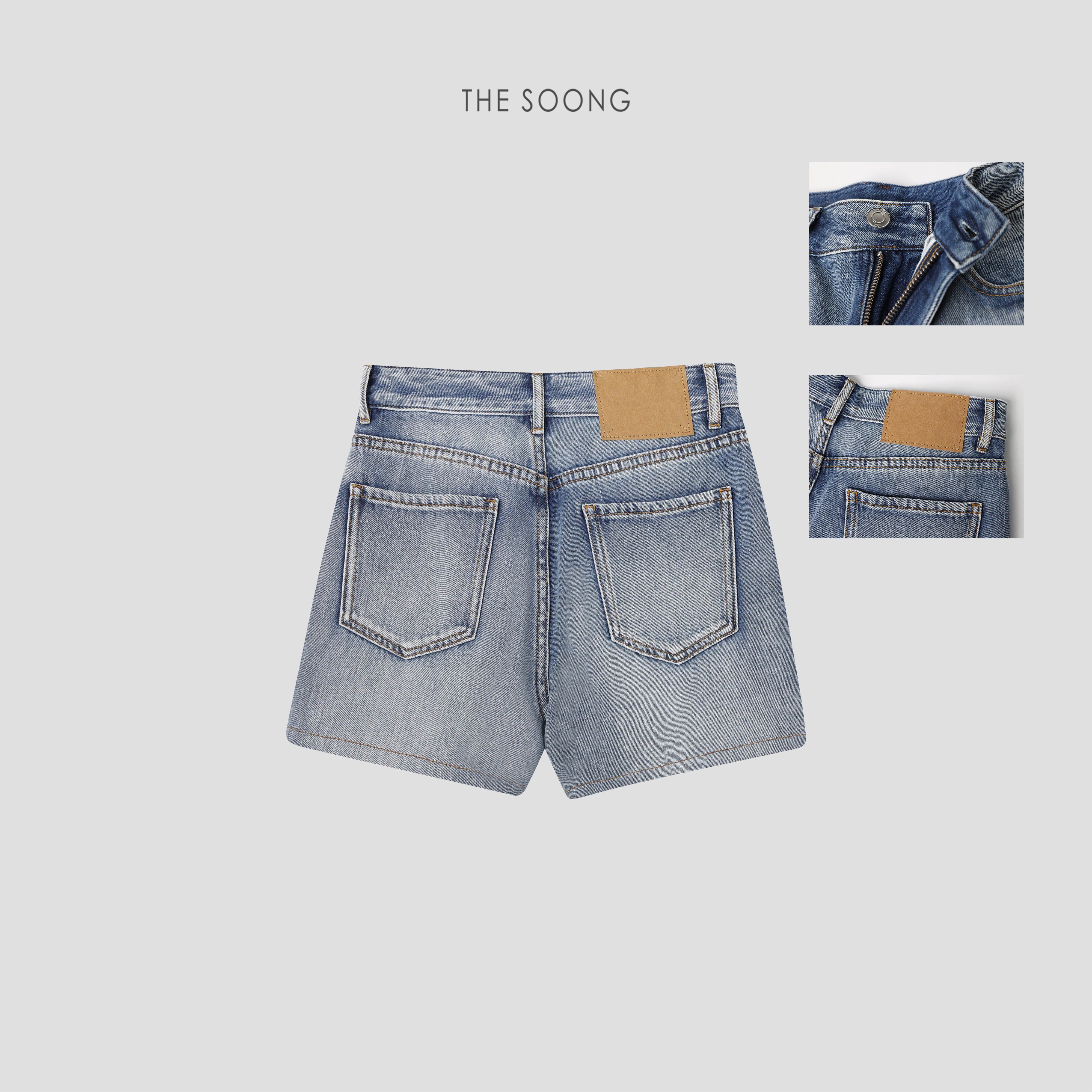 【清仓】安塔利亚 水洗破洞女中腰无弹全条喷砂牛仔短裤4229