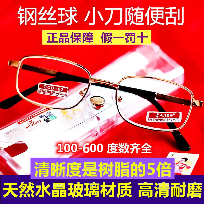 天然水晶玻璃老花镜男款老人老花眼镜女士高清老光镜高档正品镜片