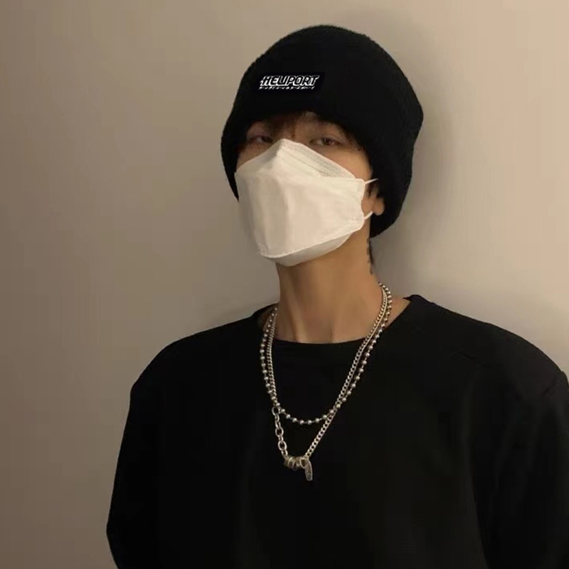 HELIPORT停机坪 字母硅胶冷帽百搭潮牌保暖男女情侣冬帽子毛线帽