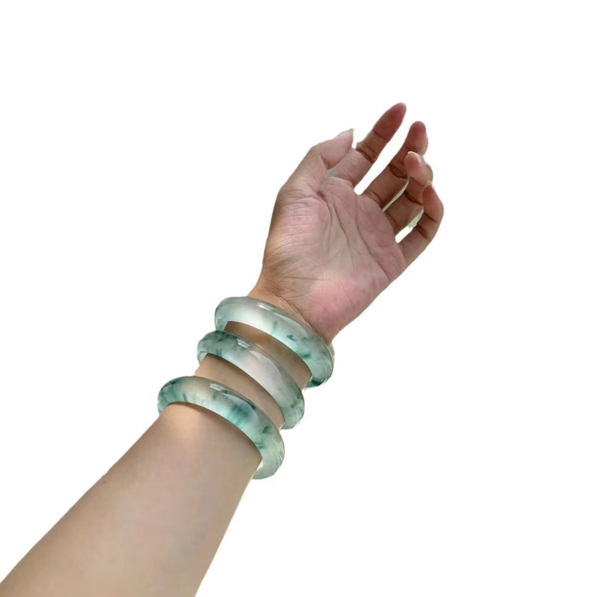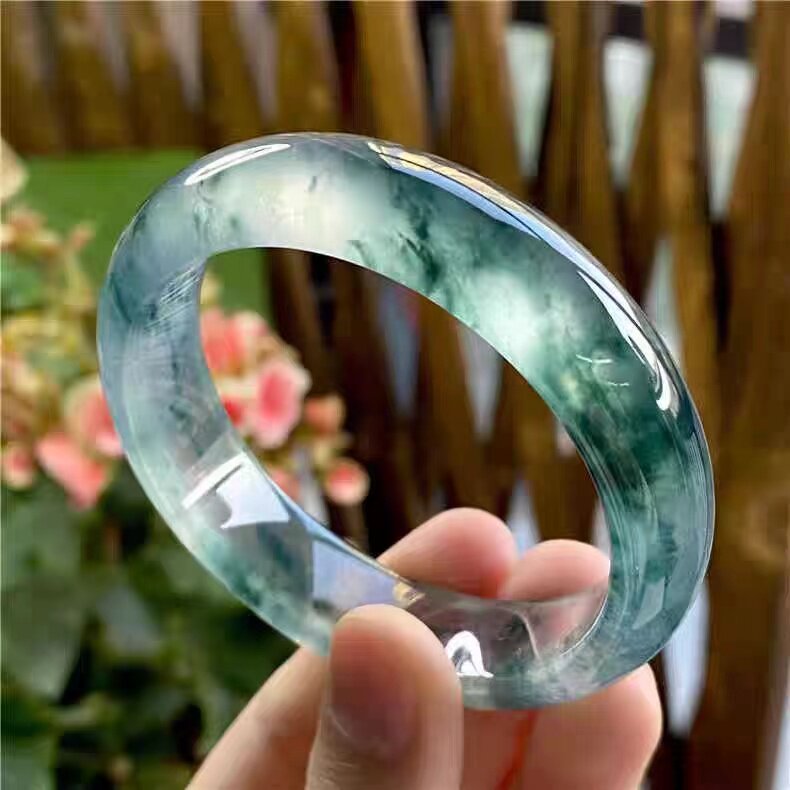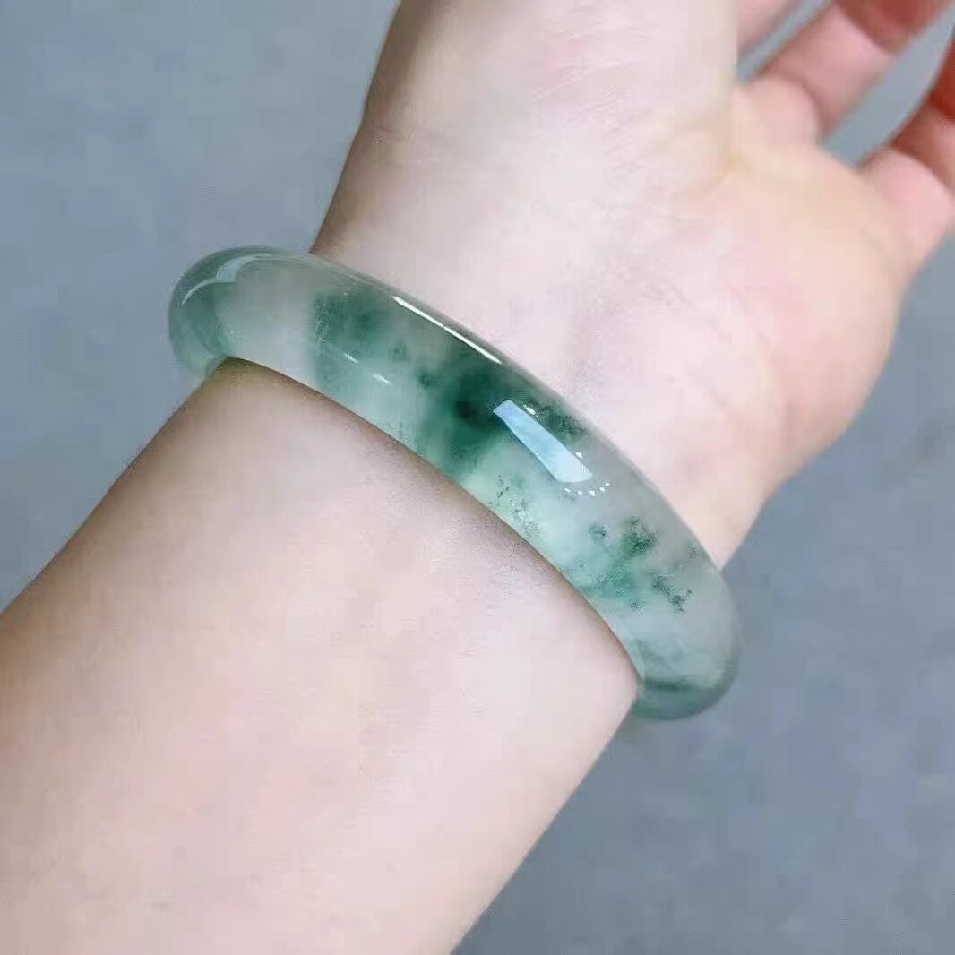 女款天然飘花冰种和田玉手镯金丝玉翡翠色玉手镯正品新疆玉髓镯子