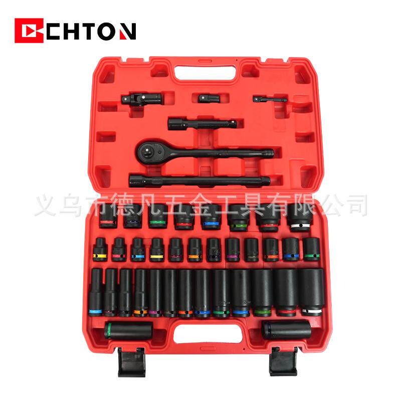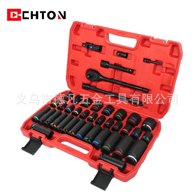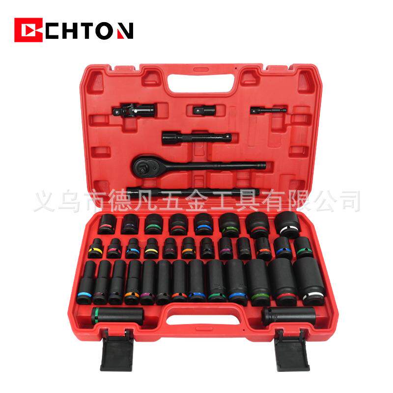 跨境41件套红盒加厚彩色气动风炮套筒72齿棘轮扳手大飞工具套装