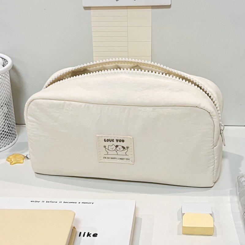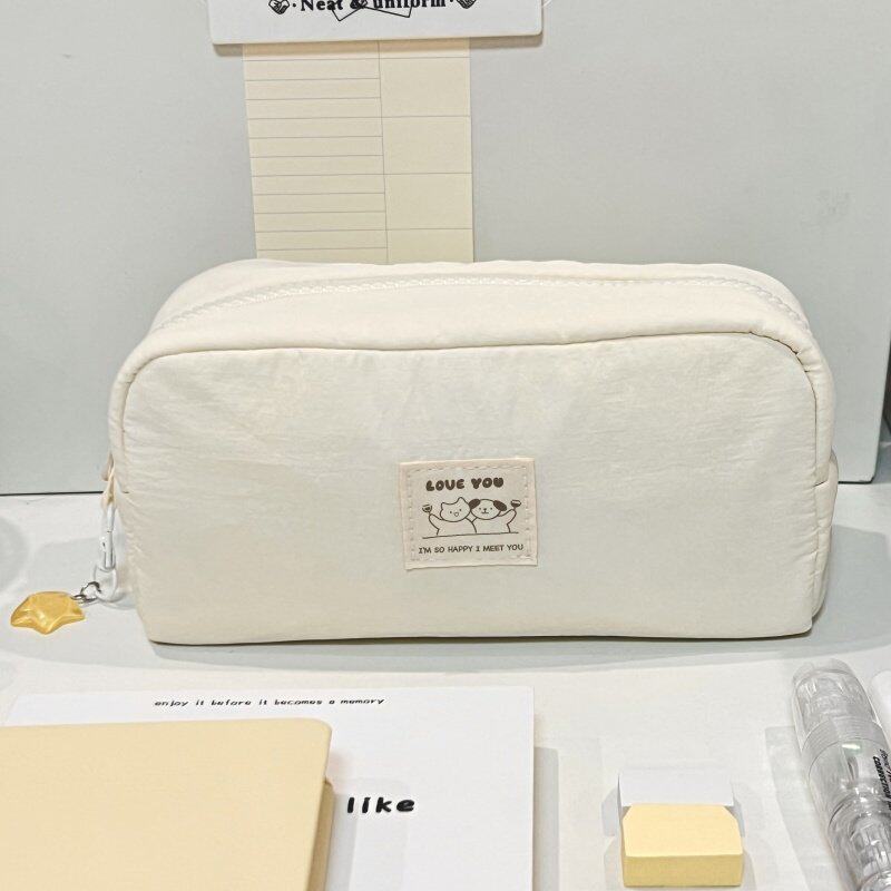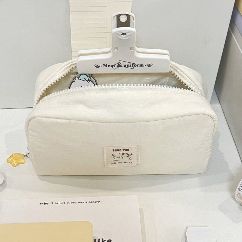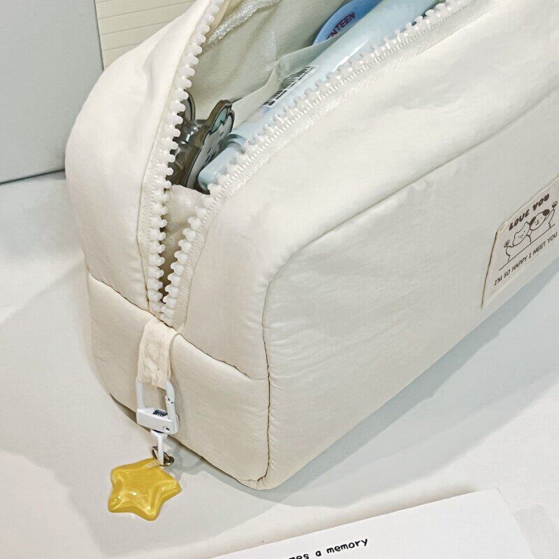 简约白色纯色系奶油小方墩墩包笔袋可用作化妆包2025新款超火初高中生女生ins高颜值大容量多隔层文具袋