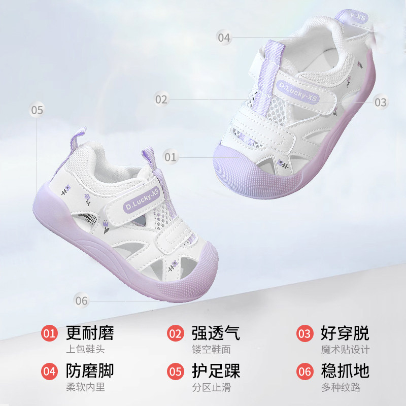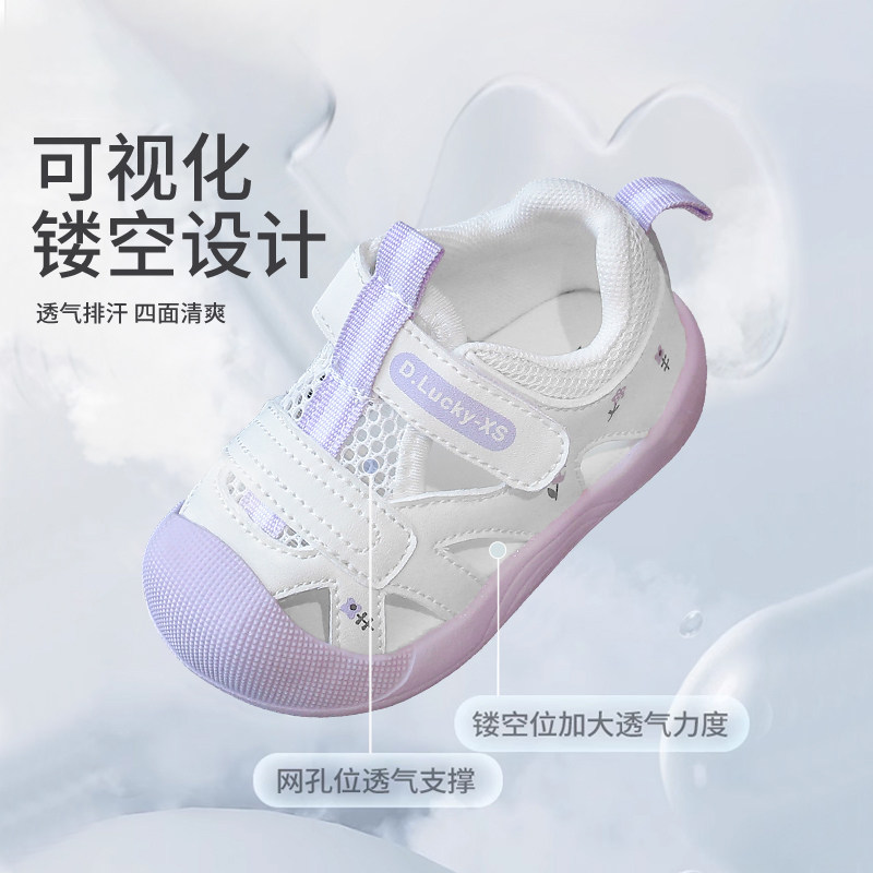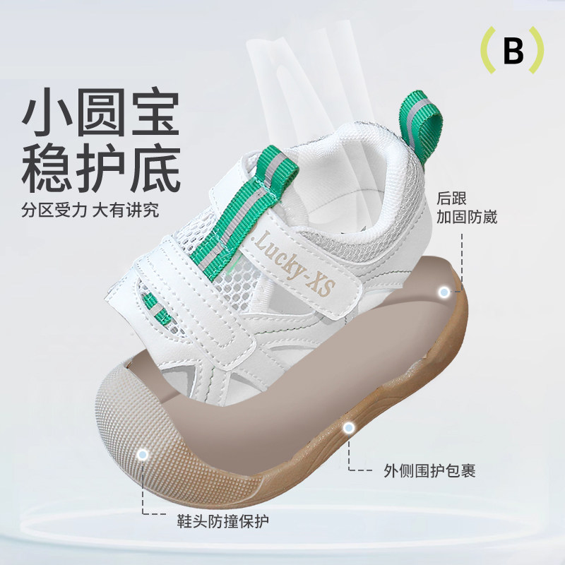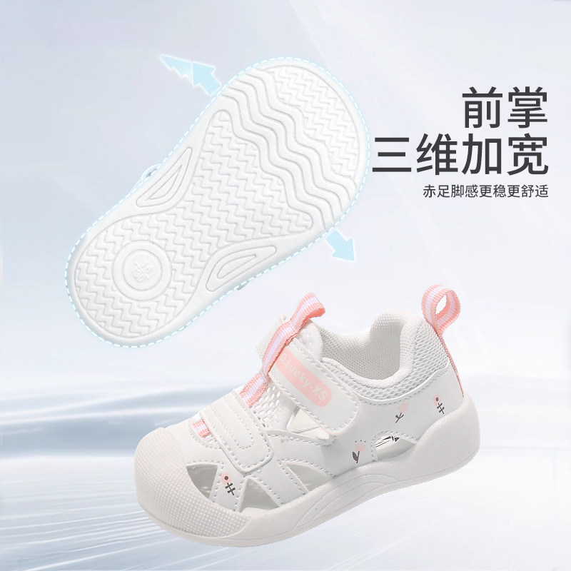 婧麒宝宝凉鞋夏季新款男童女童防滑软底婴儿鞋镂空网面透气机能鞋