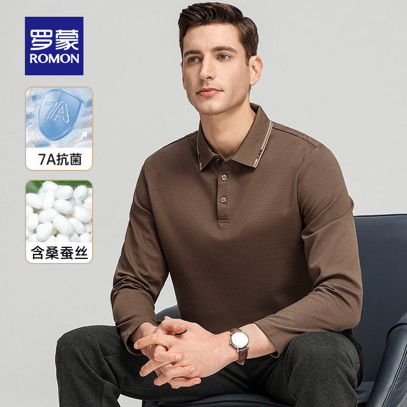 【含桑蚕丝+7A抗菌】罗蒙商务休闲长袖Polo衫2026春季新款T恤衫男