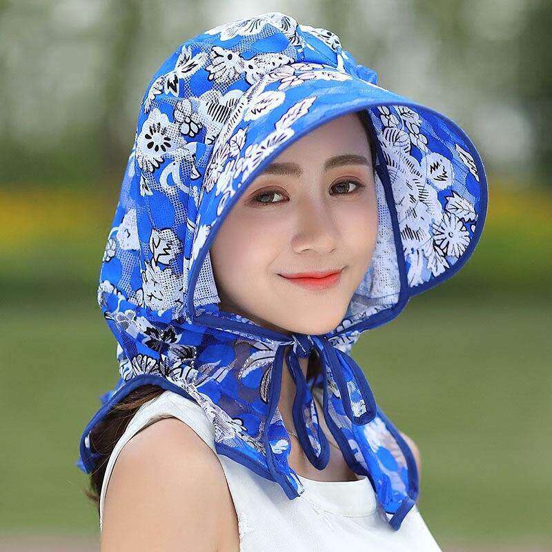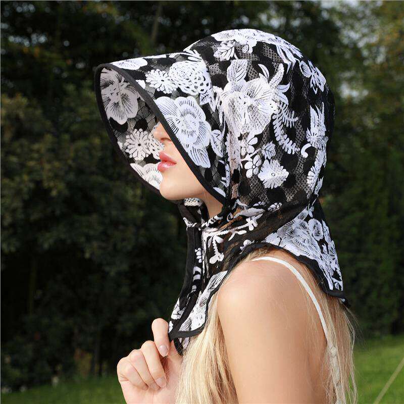 夏季防晒遮阳帽韩国农村干活凉帽透气太阳帽新蕾丝印花采茶帽子女